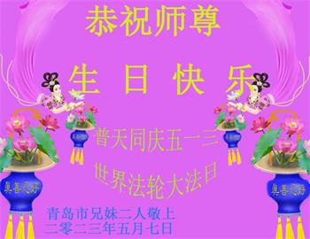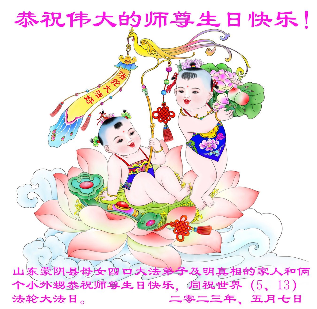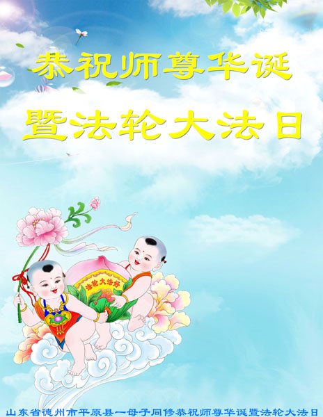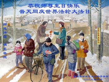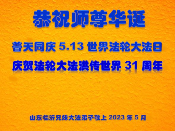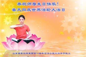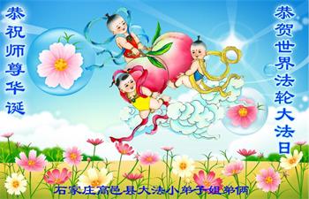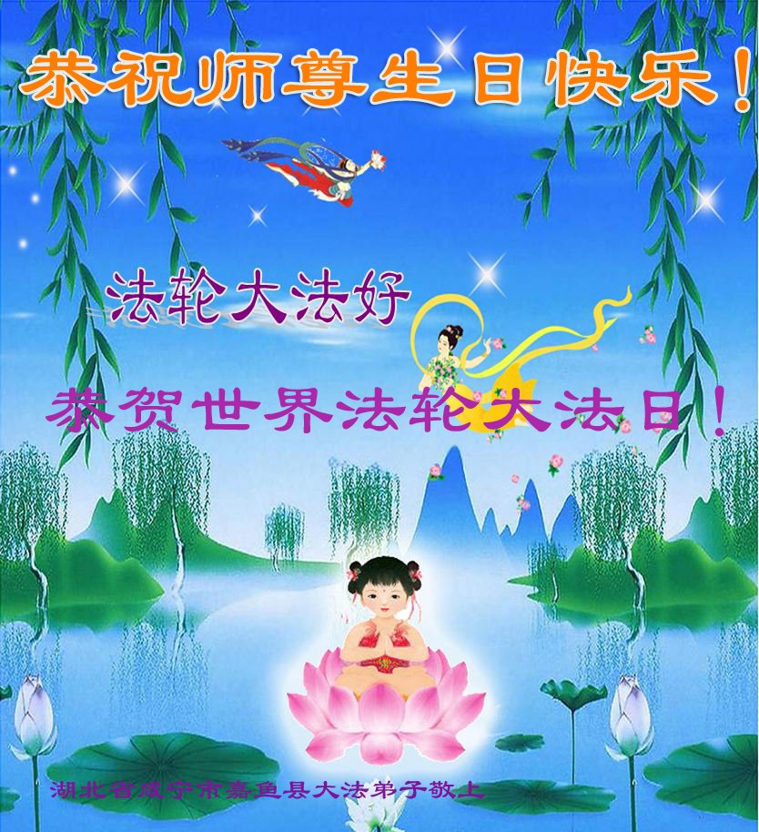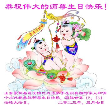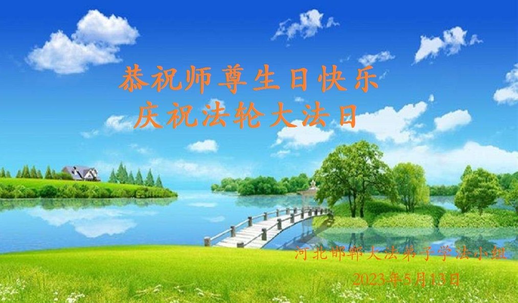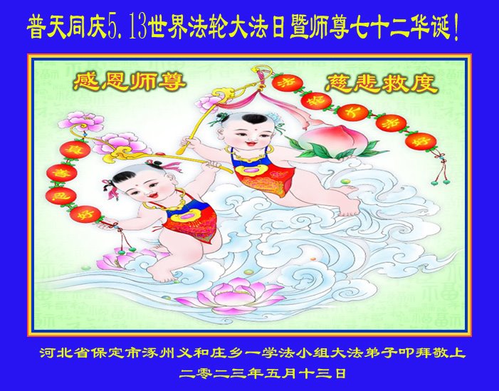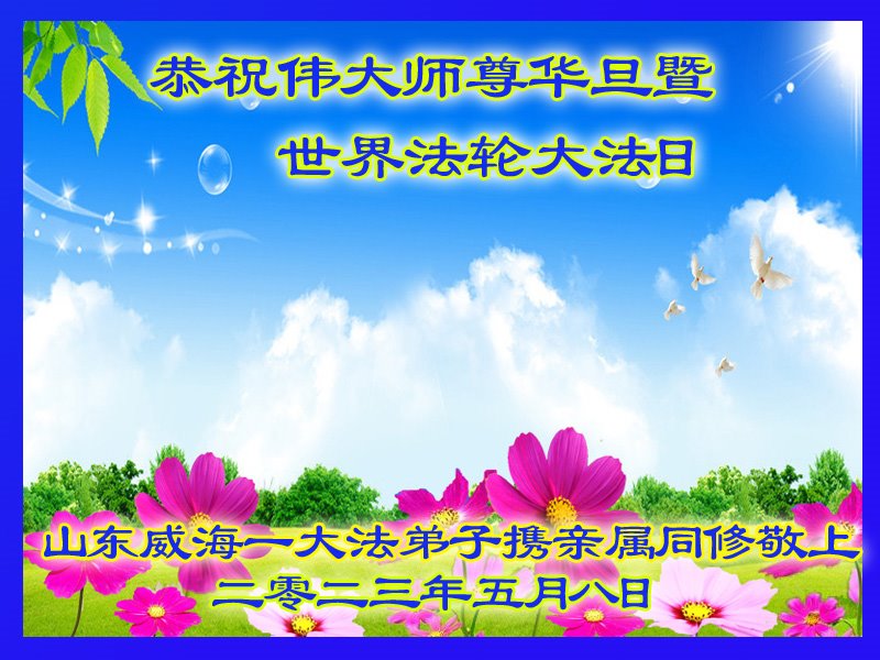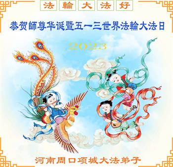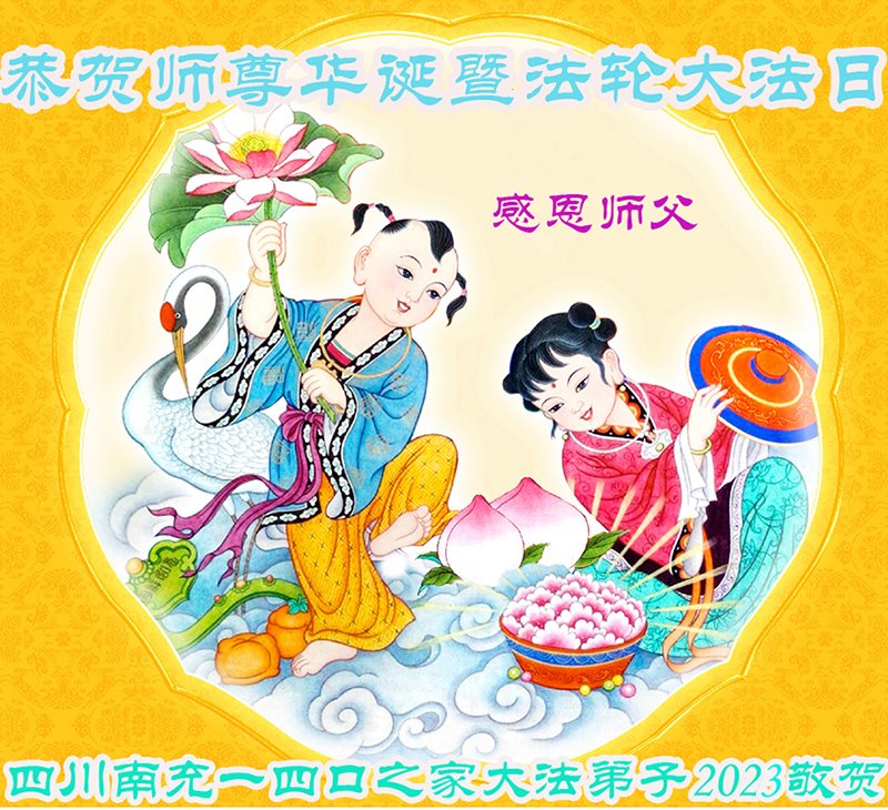 在普天同庆世界法轮大法日的殊胜日子里,我们俩老年大法弟子真诚的问声:师尊好!恭祝师尊生日快乐!感恩师尊慈悲救度!