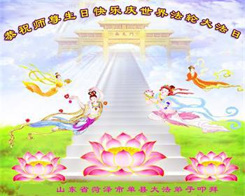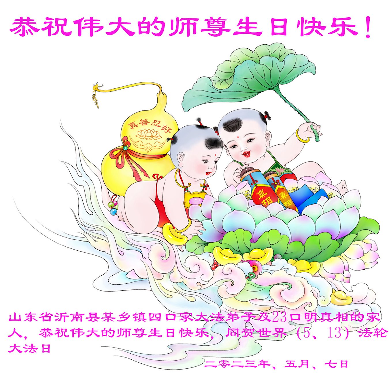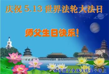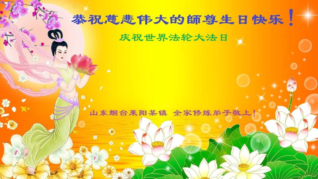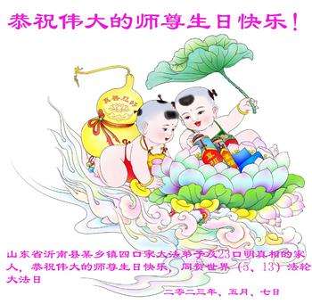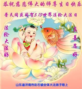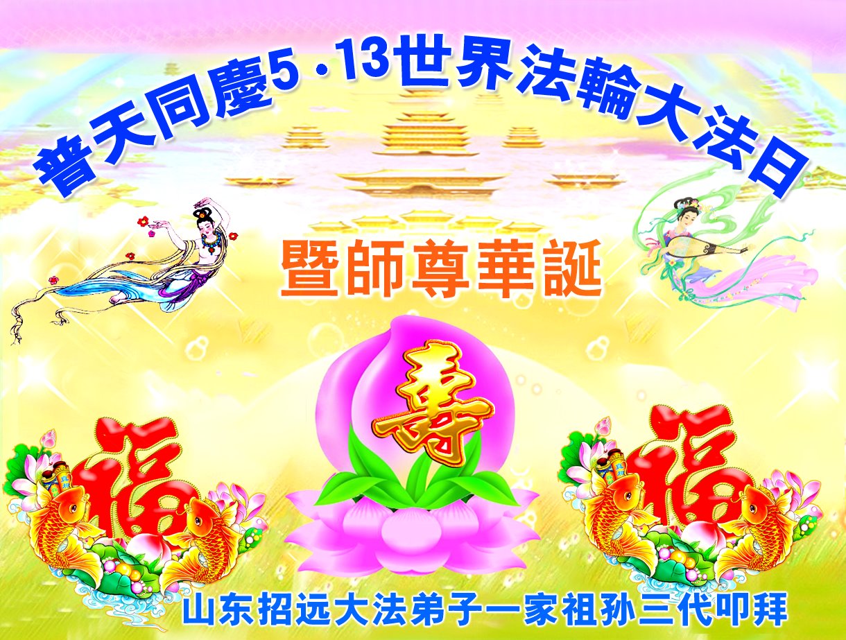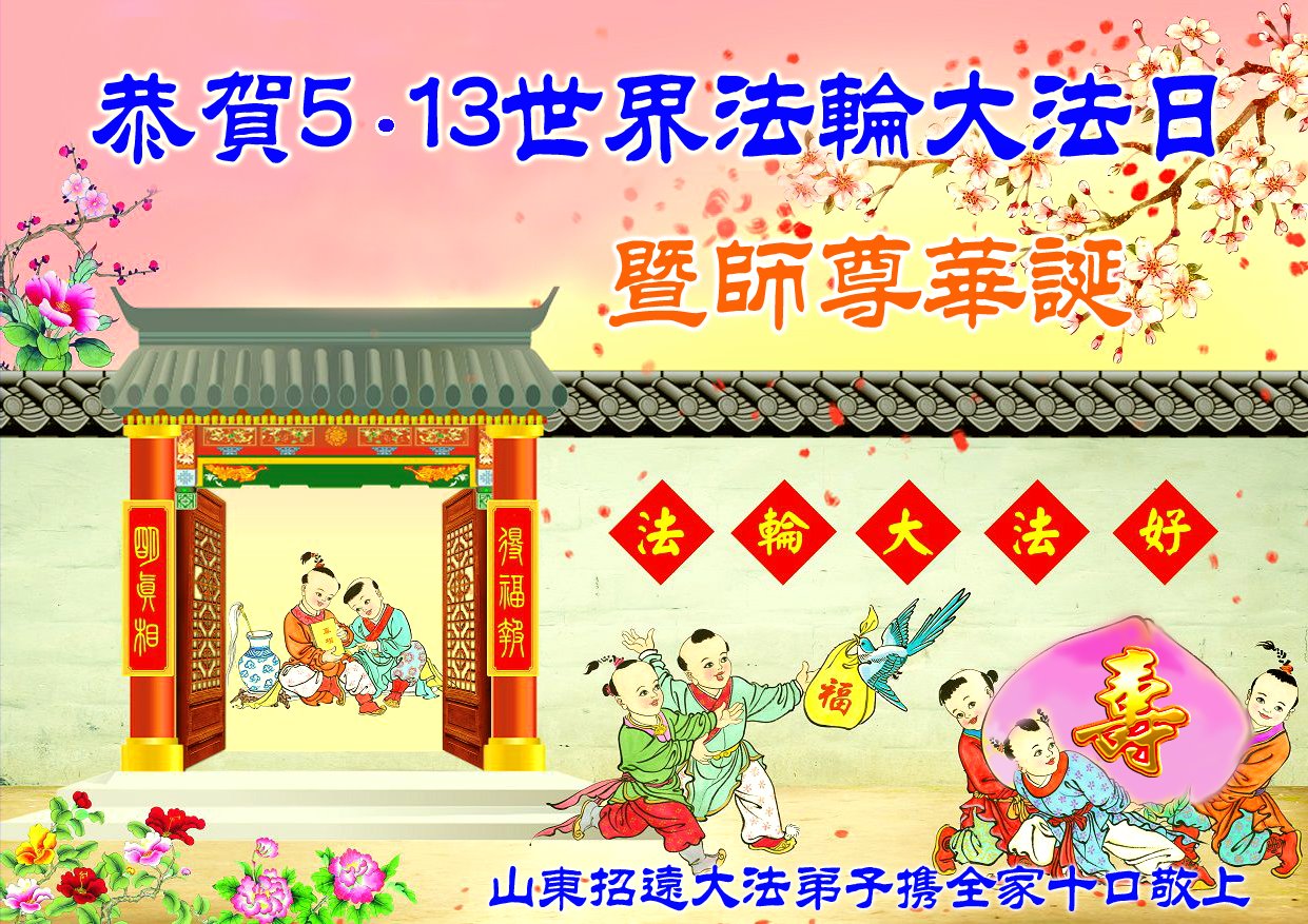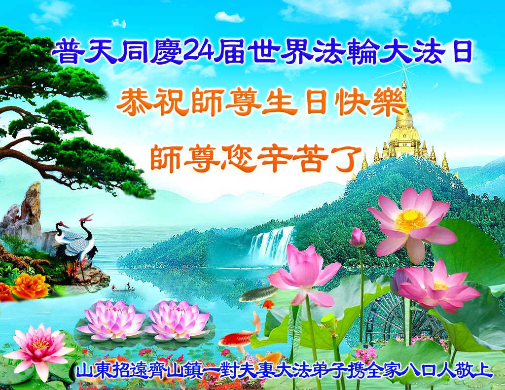 山东招远齐山镇一对夫妻大法弟子携全家八口人敬上