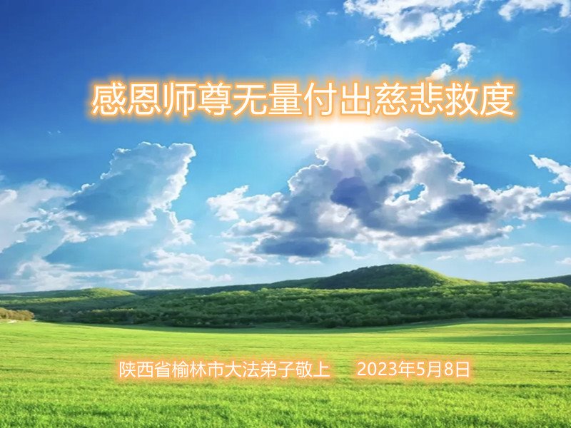 师尊为了挽救苍生吃了无数的苦、操尽了心。弟子得到了健康的身体、纯净的心灵,弟子无以回报师恩,只有努力多学法,学好法,修好自己,与同修配合好,利用多种方式救人,救众生脱离中共魔掌,成为无限美好的新宇宙的生命。请师父放心。