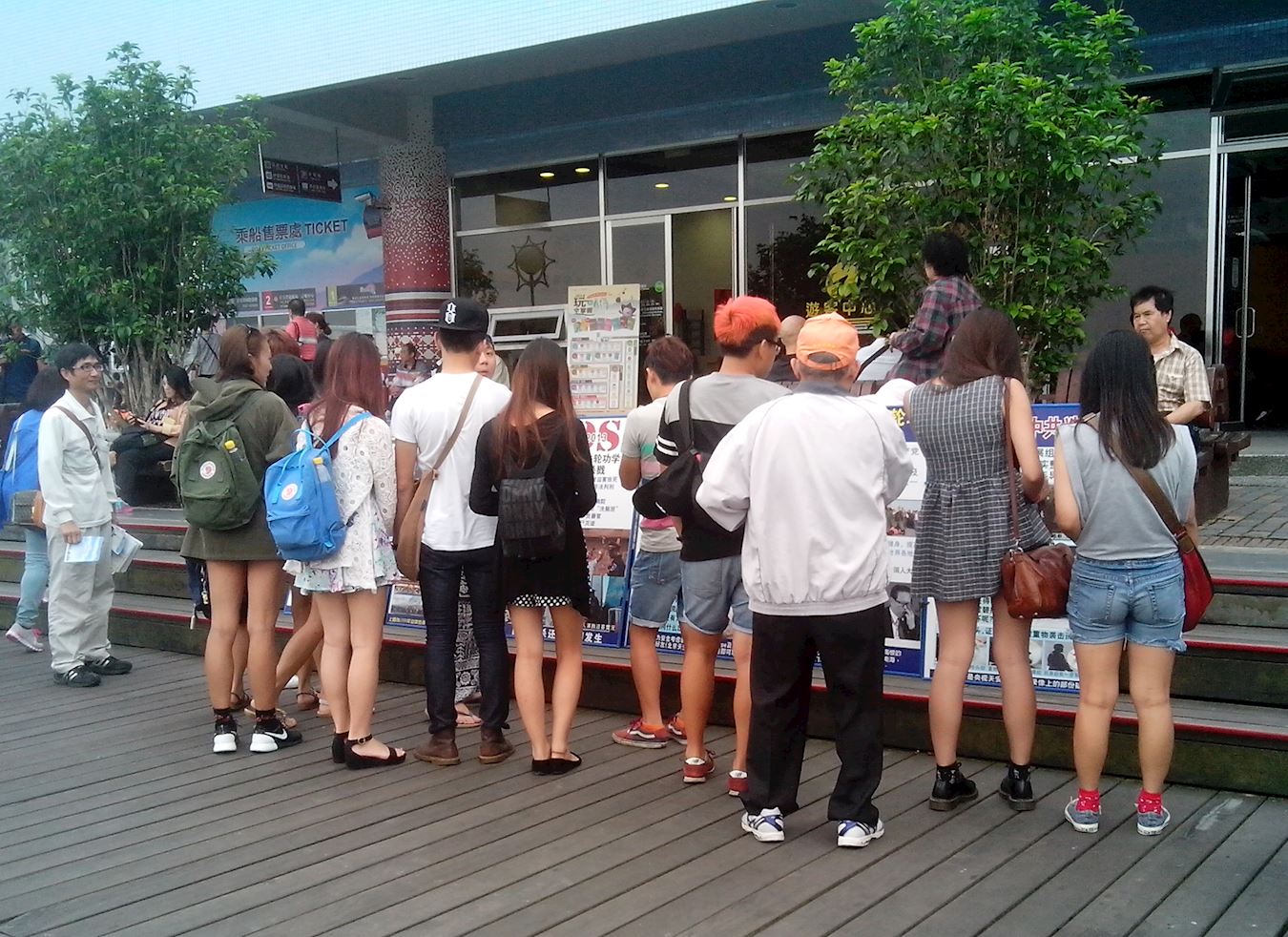 图2~3:日月潭伊达劭早期众多大陆游客驻足围观在展版前观看真相展版,了解真相。