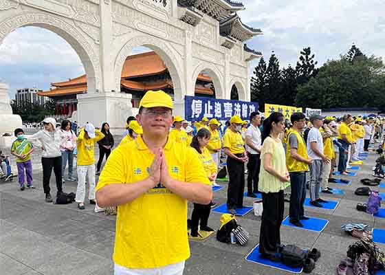 台湾北区部分法轮功学员在台北自由广场举办庆祝活动,他们来自各行各业,无论男女老少,只要按照“真善忍”要求自己,都能在大法中受益。