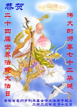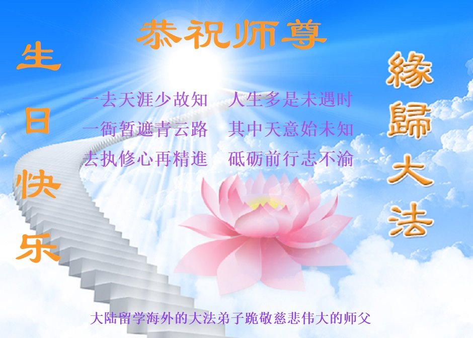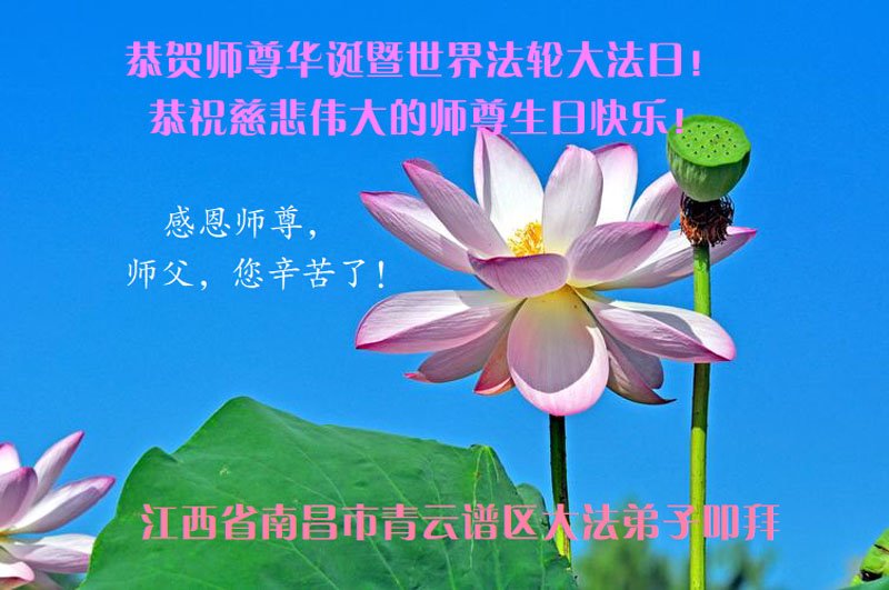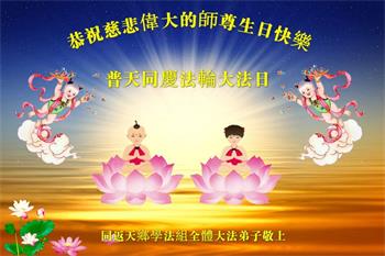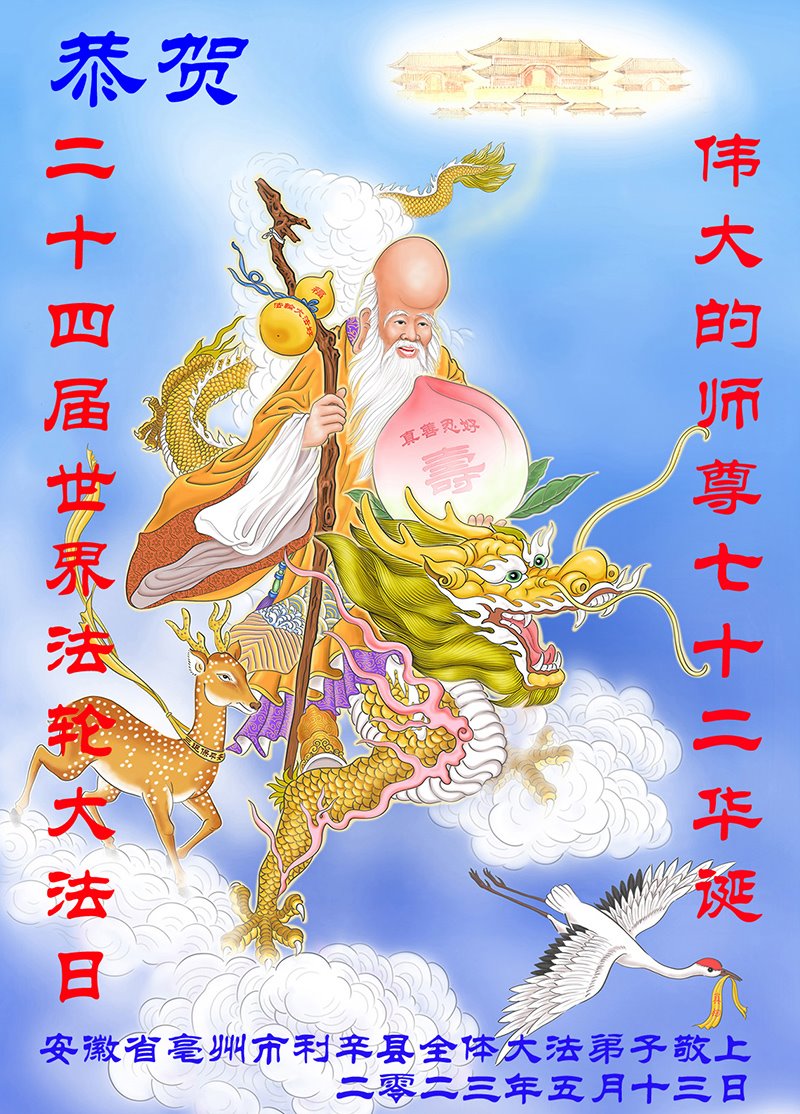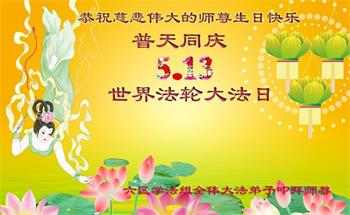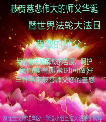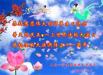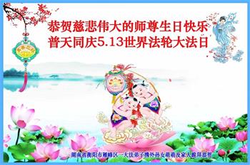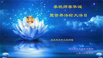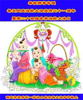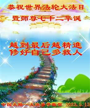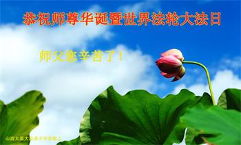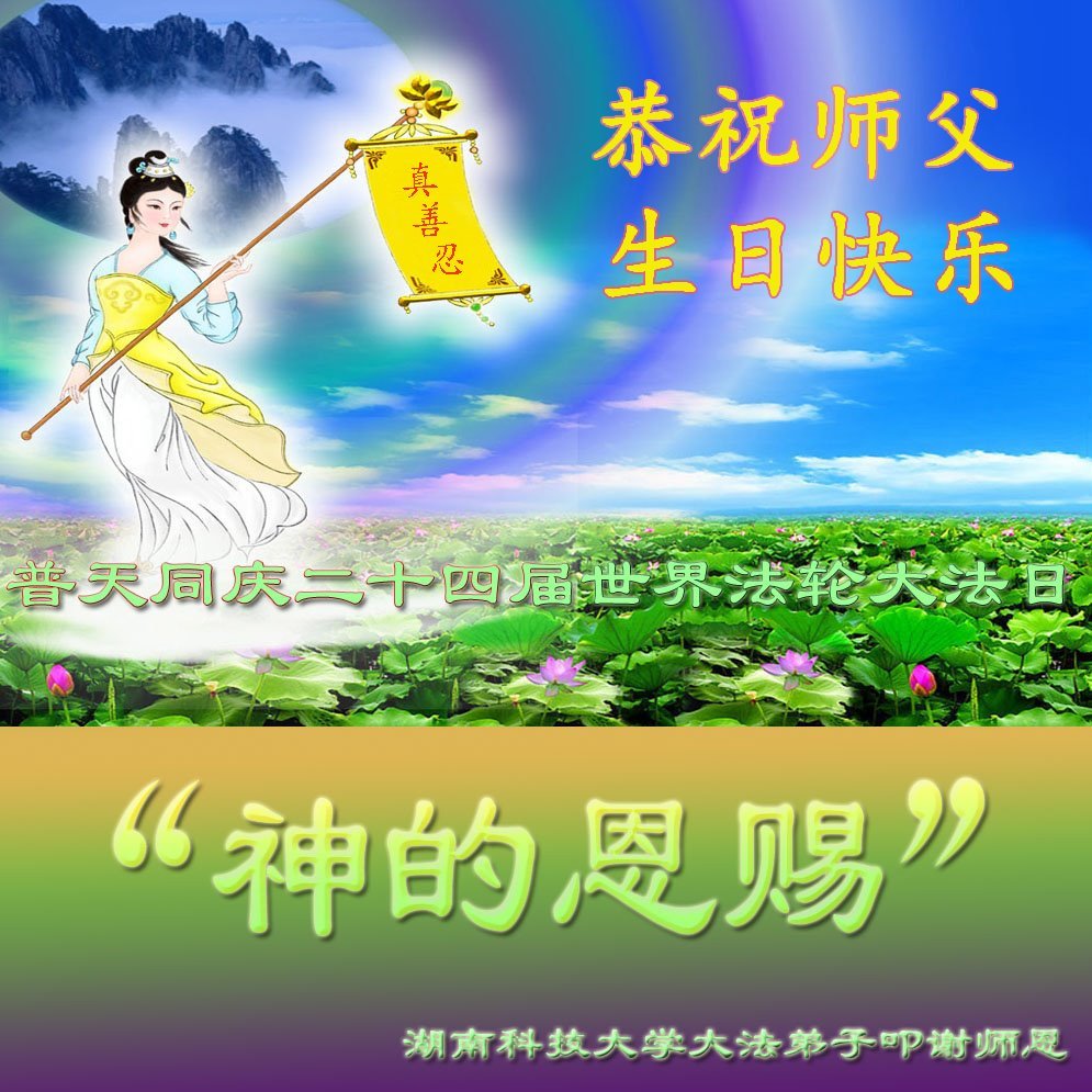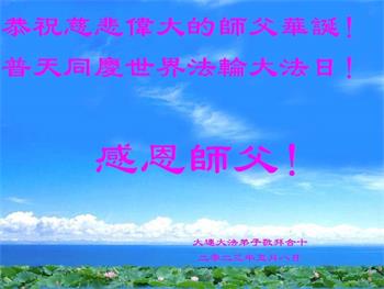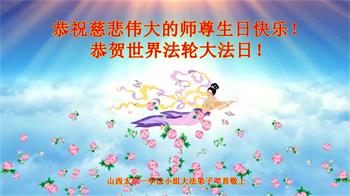 在世界法轮大法日到来之际,中国科技大学全体大法弟子敬贺师尊七十二岁华诞!庆贺法轮大法洪传三十一周年!感恩师尊的慈悲救度!感恩师尊为弟子们的一切付出承受,弟子们才能在大法中修炼、得度,生命才能得以提升,返本归真,重返家园。