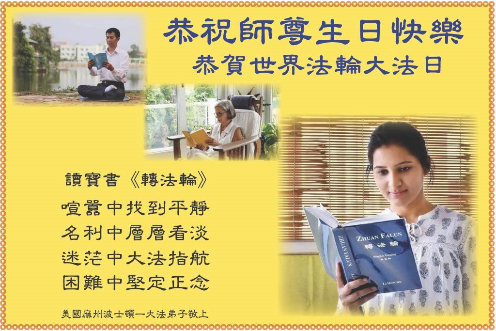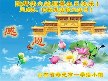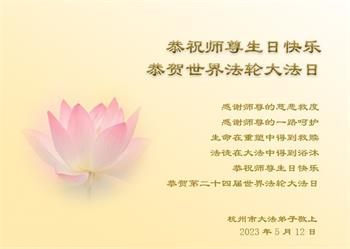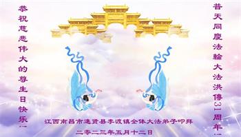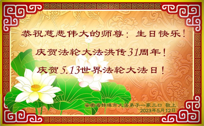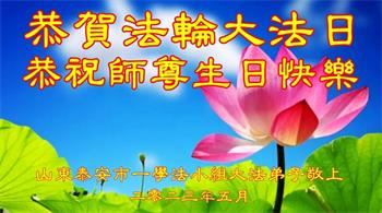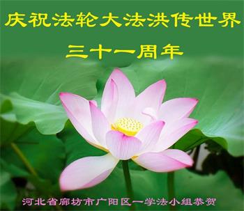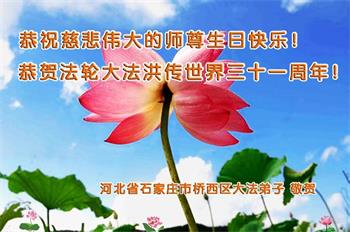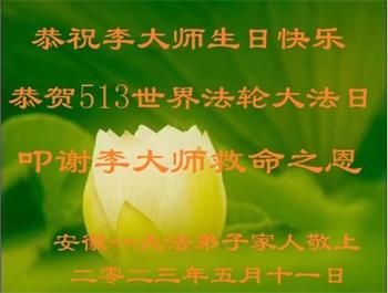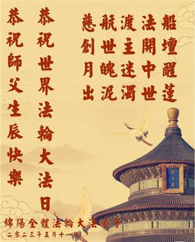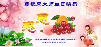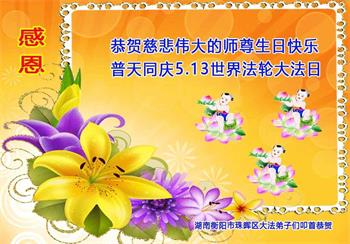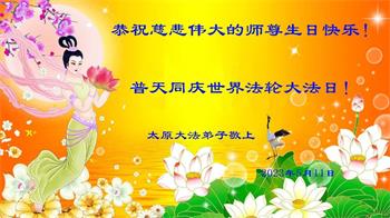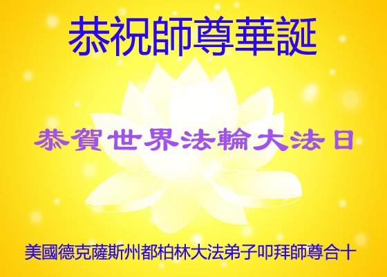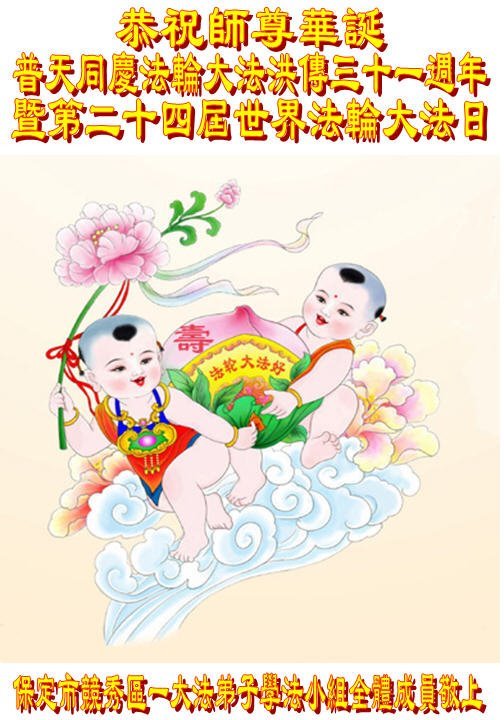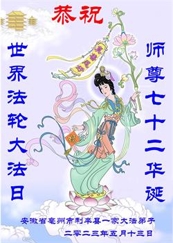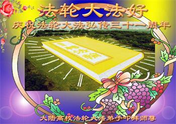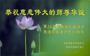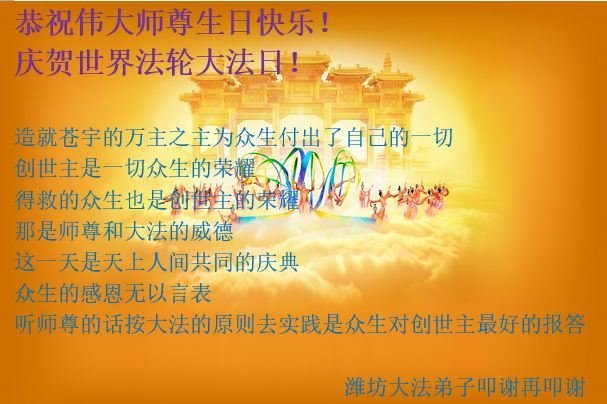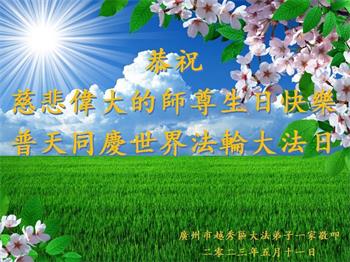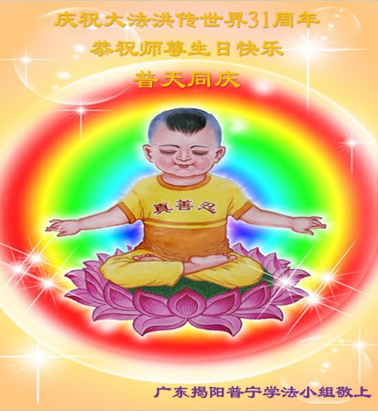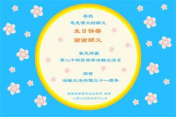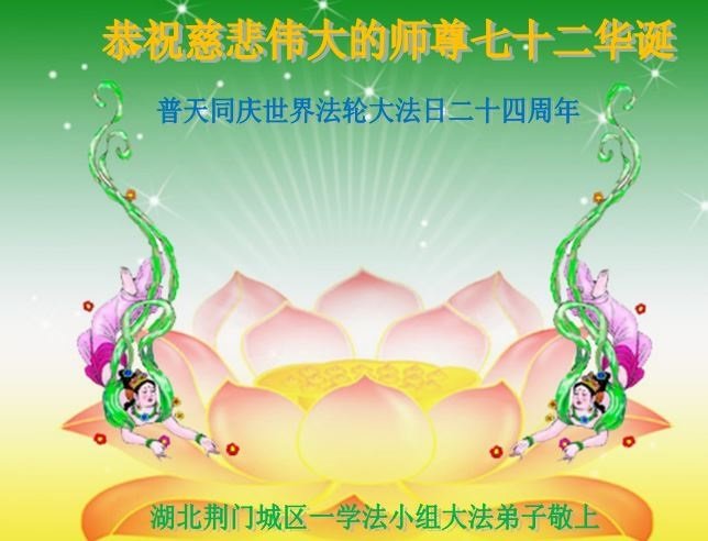 在世界法轮大法日到来之际,中国科技大学全体大法弟子敬贺师尊七十二岁华诞!庆贺法轮大法洪传三十一周年!感恩师尊的慈悲救度!感恩师尊为弟子们的一切付出承受,弟子们才能在大法中修炼、得度,生命才能得以提升,返本归真,重返家园。