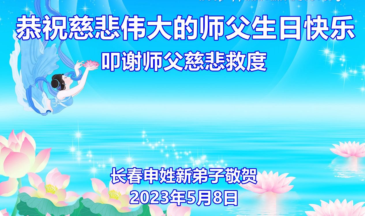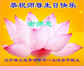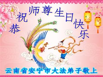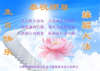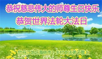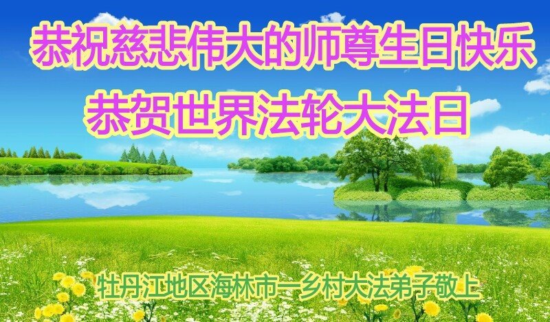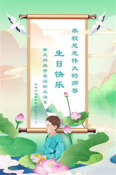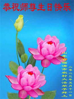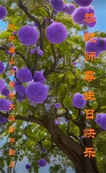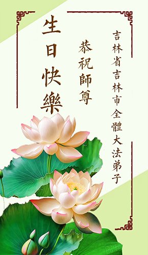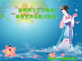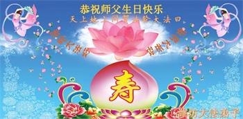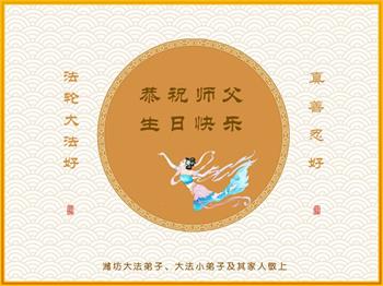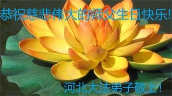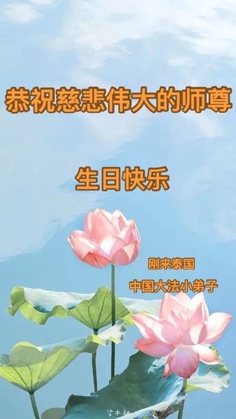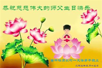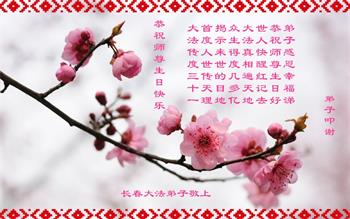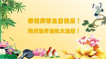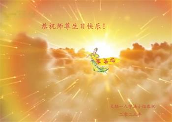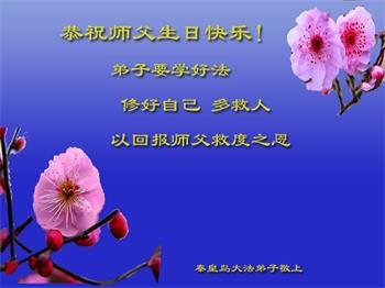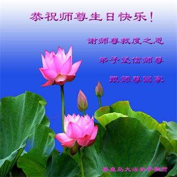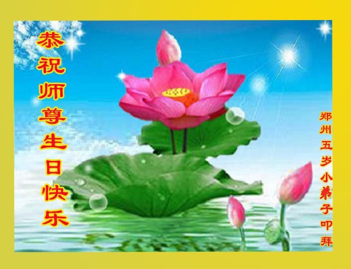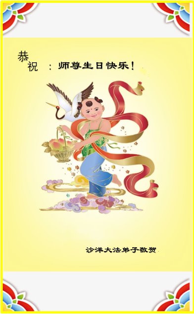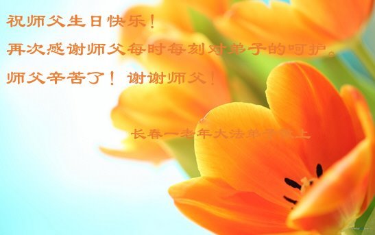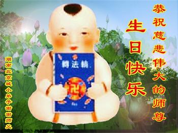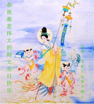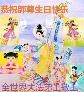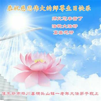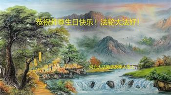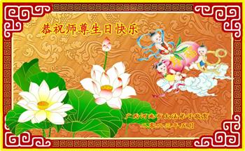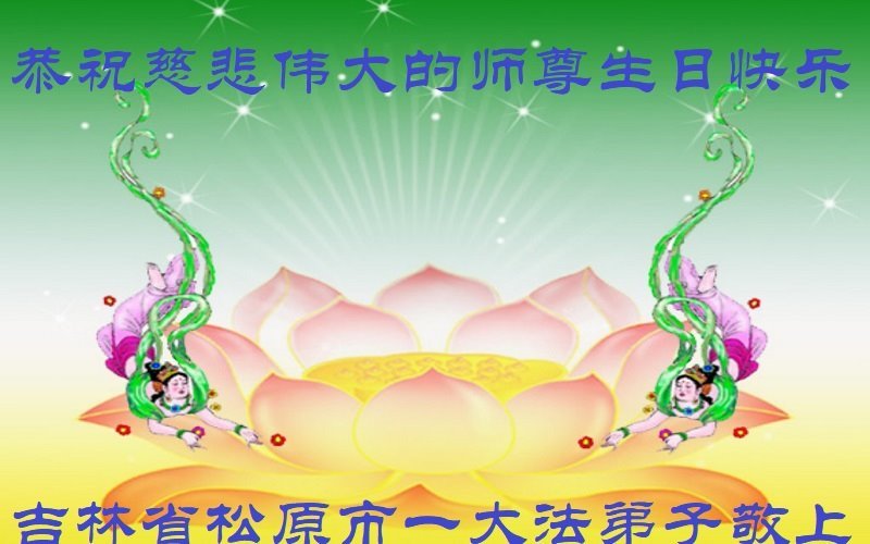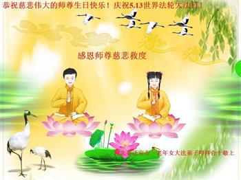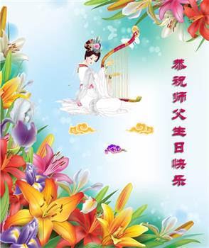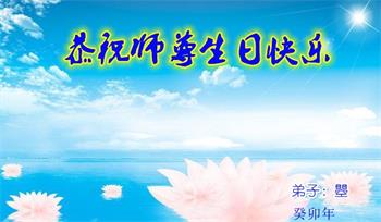 尊敬的师父好:我是昔日的小弟子,现在已成为一名青年弟子。是师父您在弟子千钧一发之际,使弟子躲过了一场车毁人亡的大劫。弟子感恩师父的救命之恩,弟子今后按照师父的大法标准去做,一定会成为一名合格的大法弟子。谢谢师父的保护与怜慈!祝愿师父生日快乐!