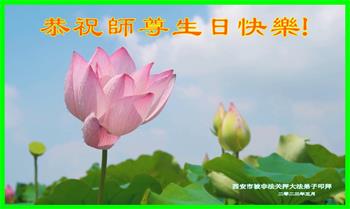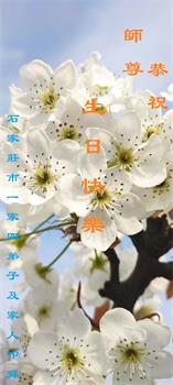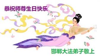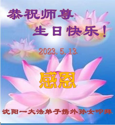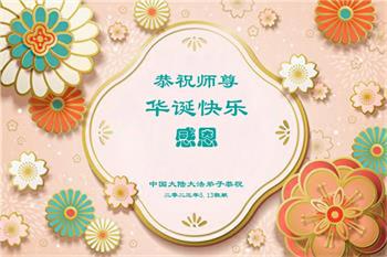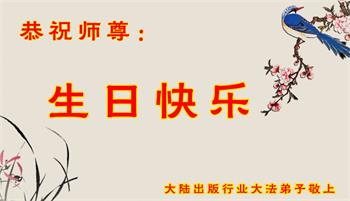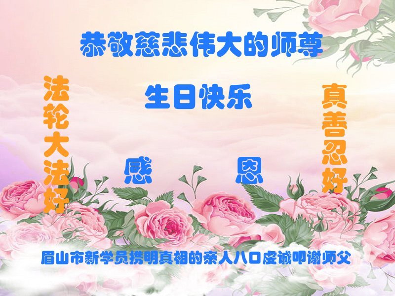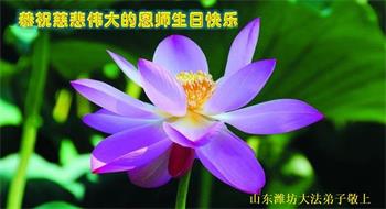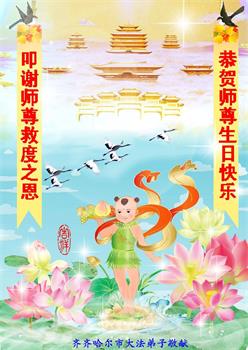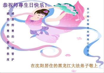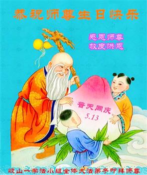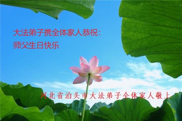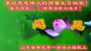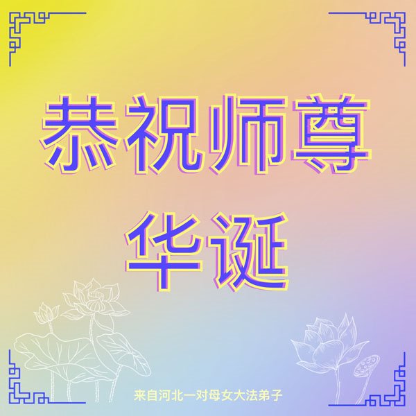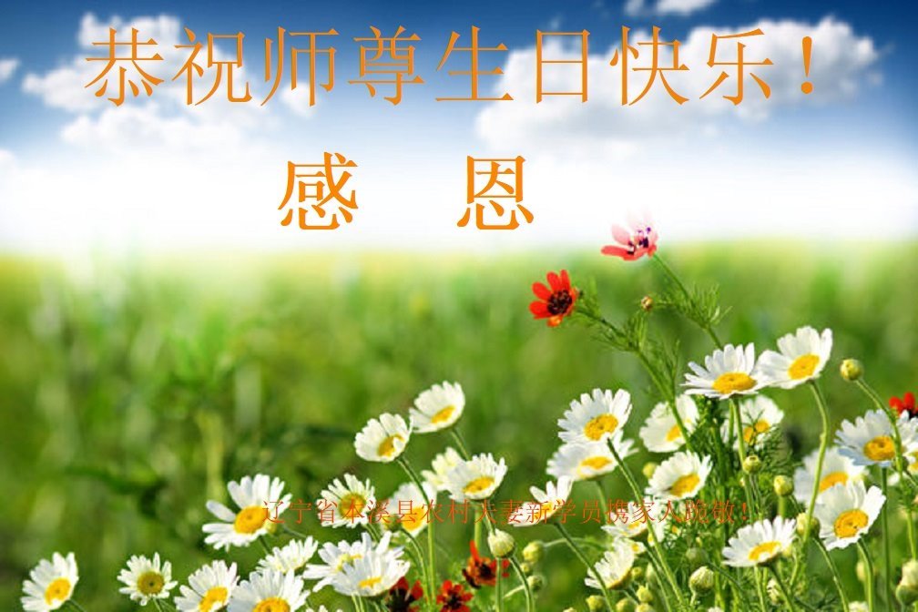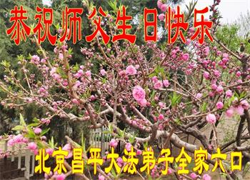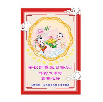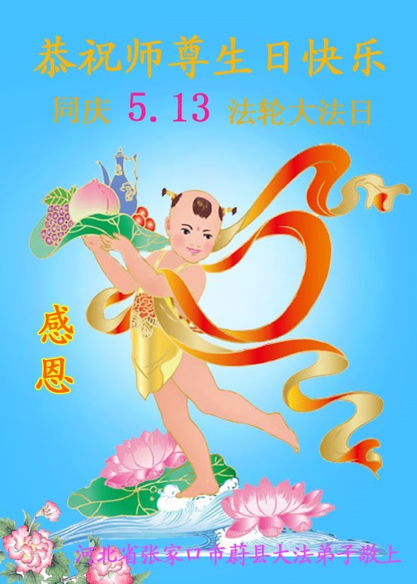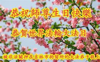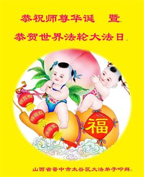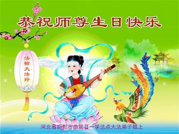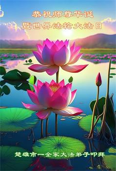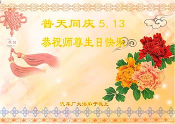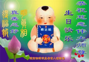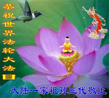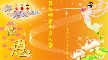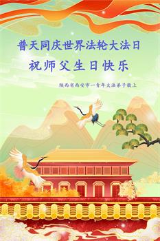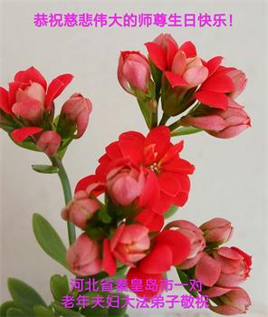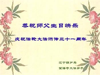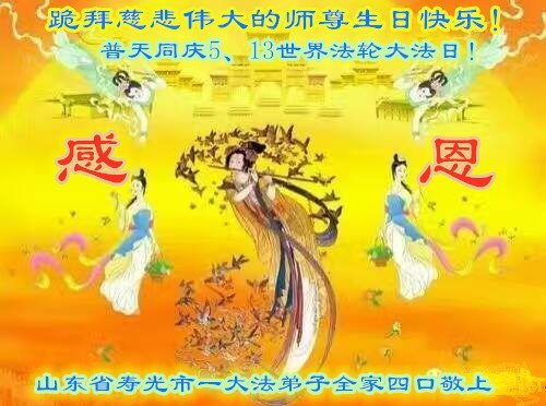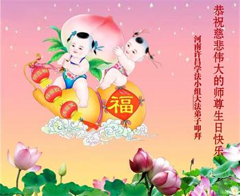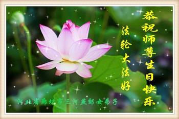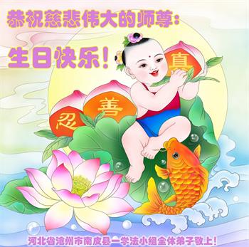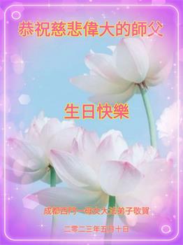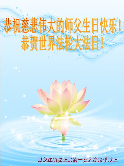 尊敬的师父好:我是昔日的小弟子,现在已成为一名青年弟子。是师父您在弟子千钧一发之际,使弟子躲过了一场车毁人亡的大劫。弟子感恩师父的救命之恩,弟子今后按照师父的大法标准去做,一定会成为一名合格的大法弟子。谢谢师父的保护与怜慈!祝愿师父生日快乐!