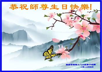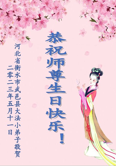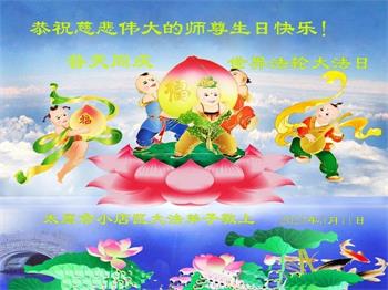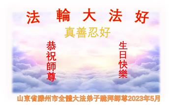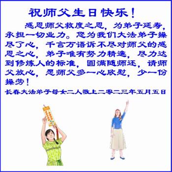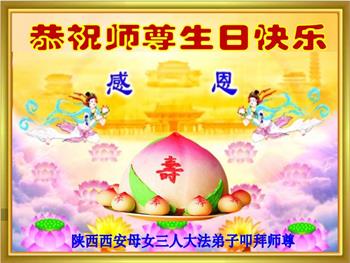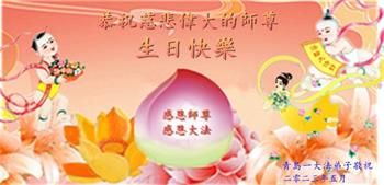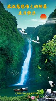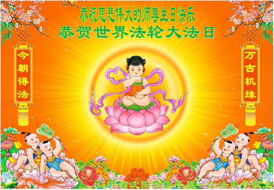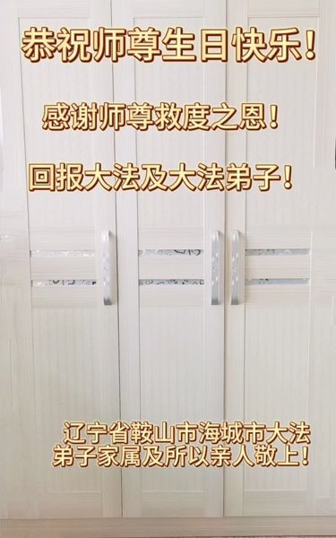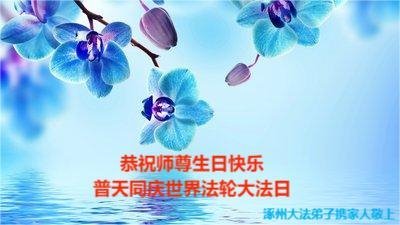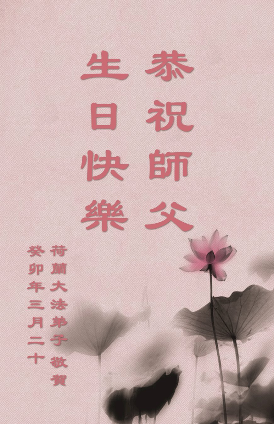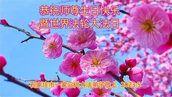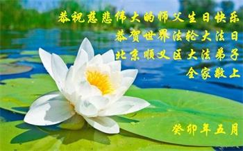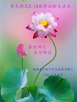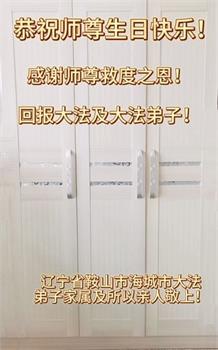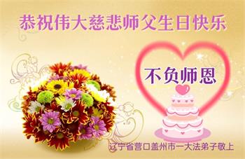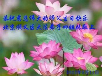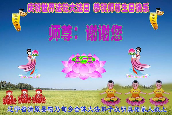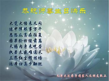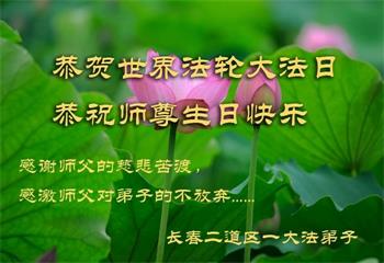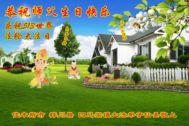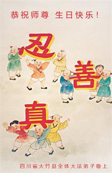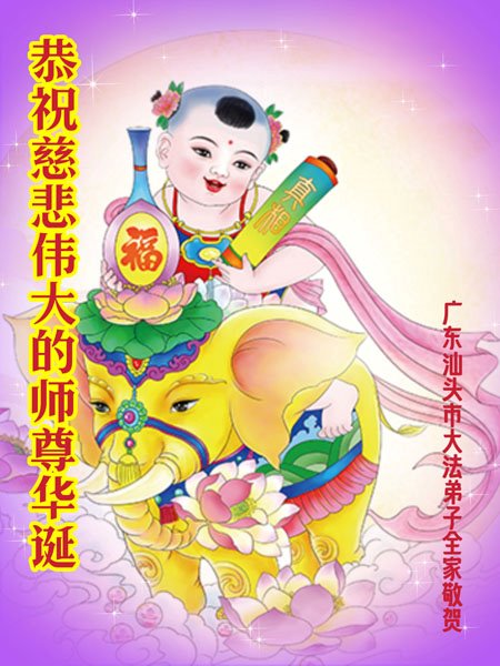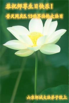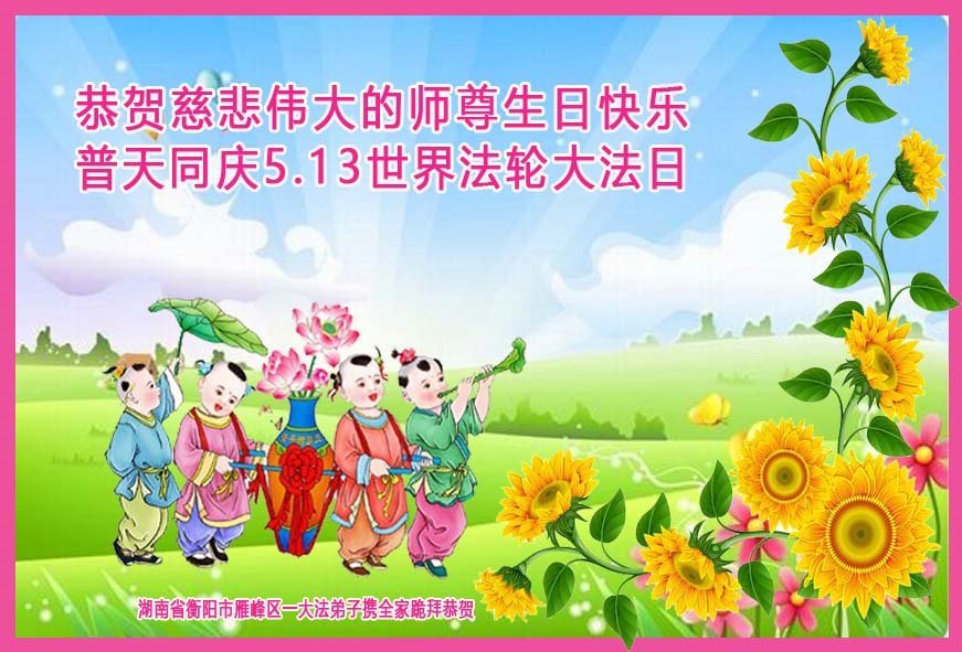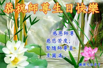 尊敬的师父好:我是昔日的小弟子,现在已成为一名青年弟子。是师父您在弟子千钧一发之际,使弟子躲过了一场车毁人亡的大劫。弟子感恩师父的救命之恩,弟子今后按照师父的大法标准去做,一定会成为一名合格的大法弟子。谢谢师父的保护与怜慈!祝愿师父生日快乐!