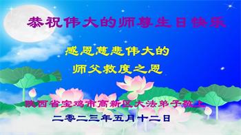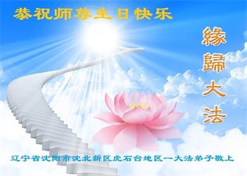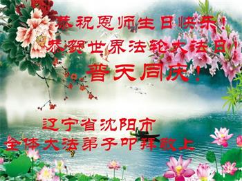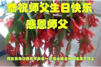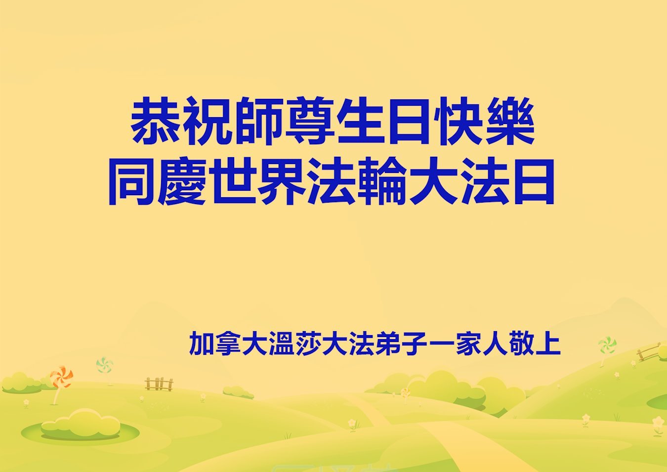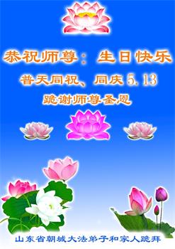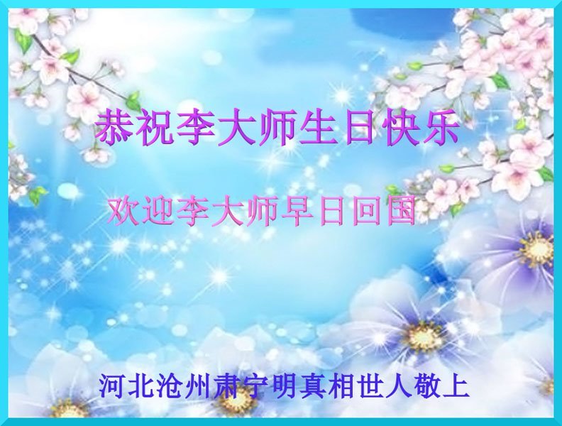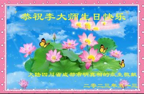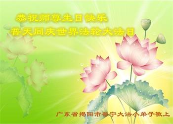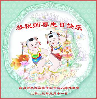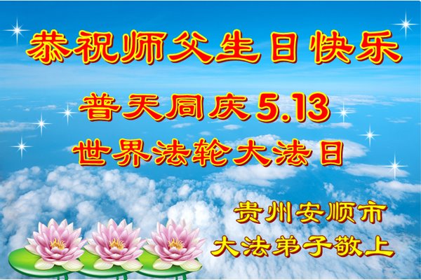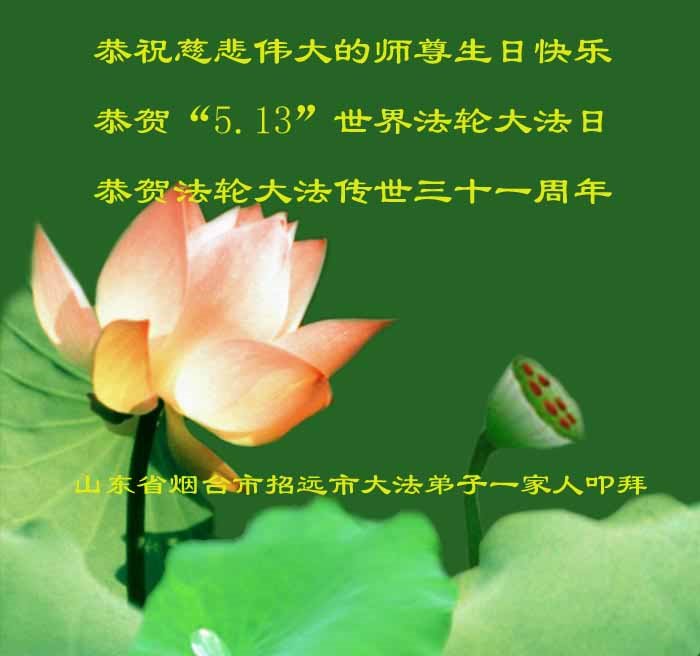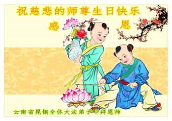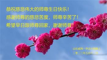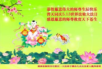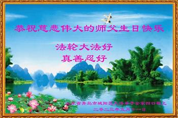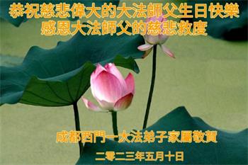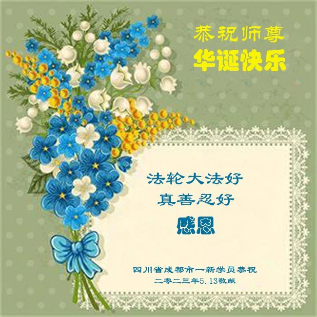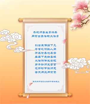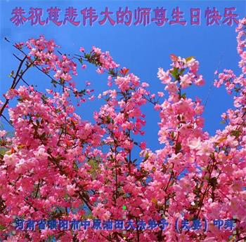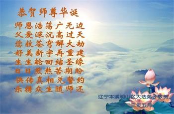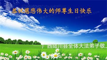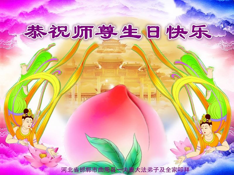 尊敬的师父好:我是昔日的小弟子,现在已成为一名青年弟子。是师父您在弟子千钧一发之际,使弟子躲过了一场车毁人亡的大劫。弟子感恩师父的救命之恩,弟子今后按照师父的大法标准去做,一定会成为一名合格的大法弟子。谢谢师父的保护与怜慈!祝愿师父生日快乐!