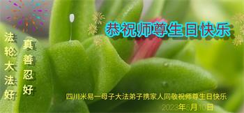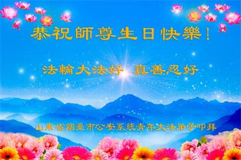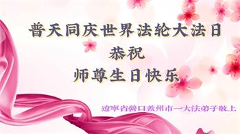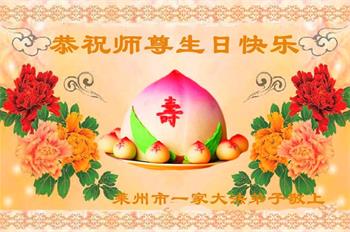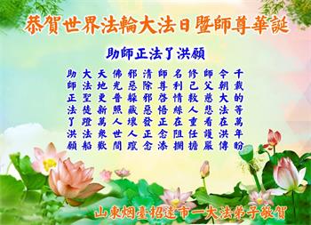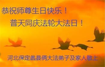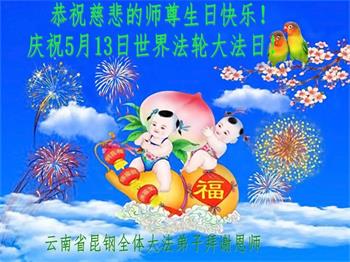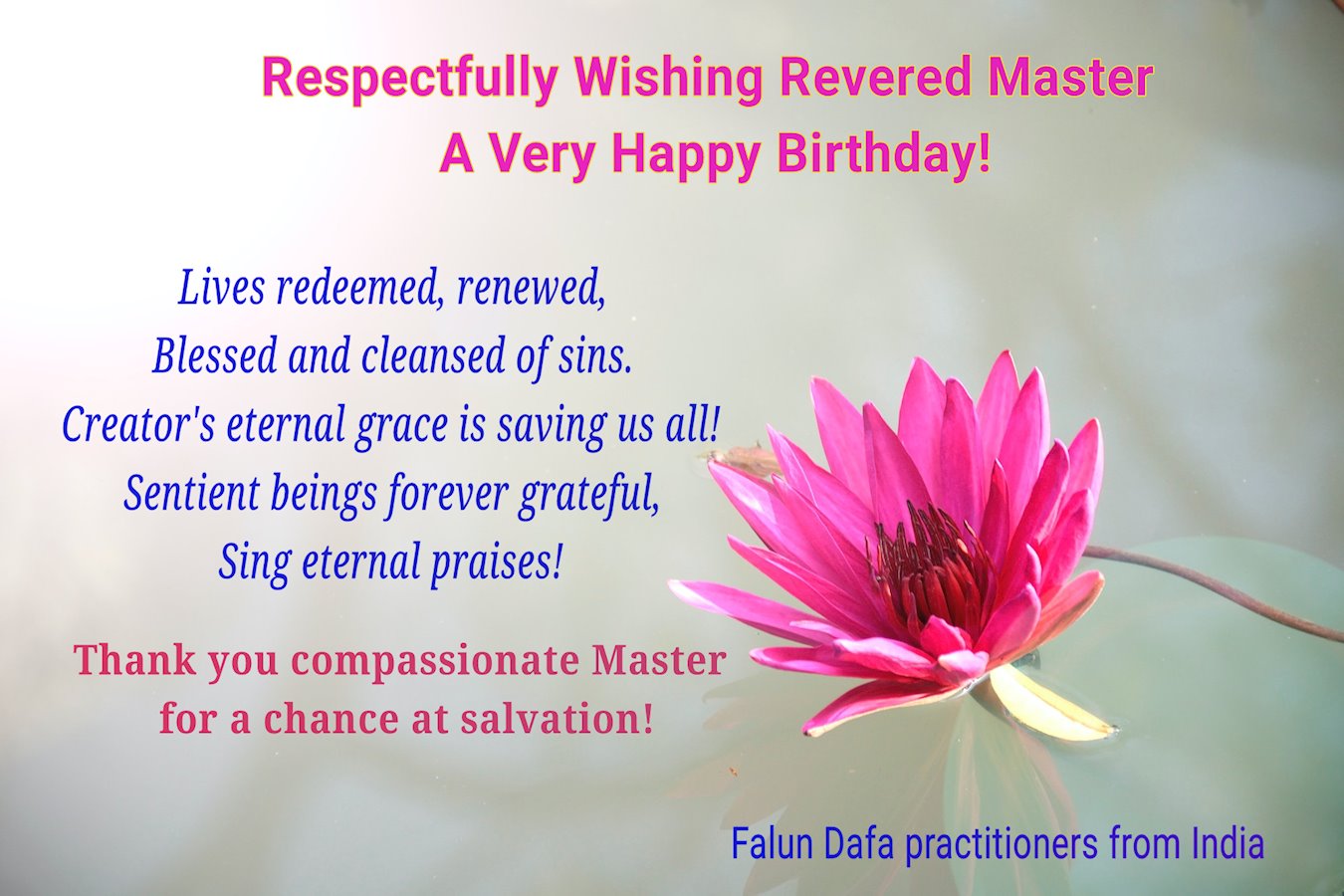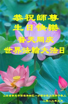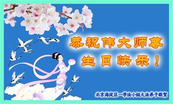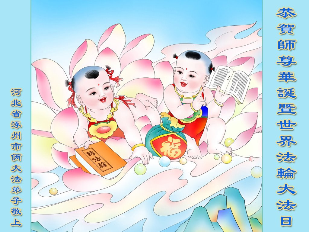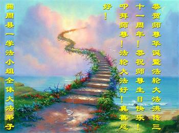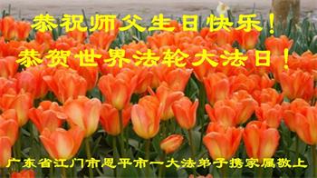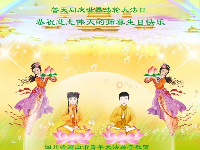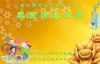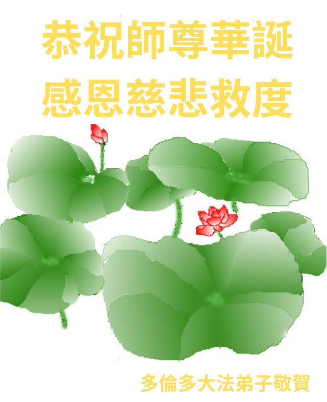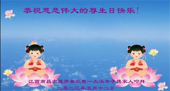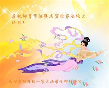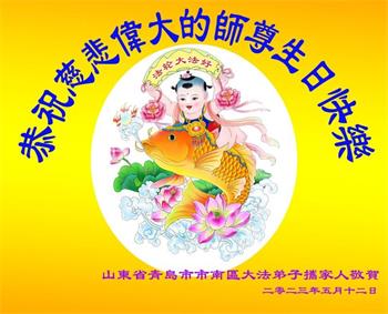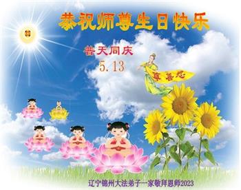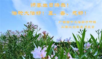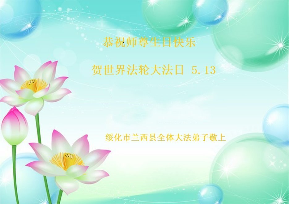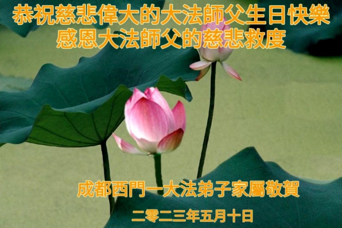 尊敬的师父好:我是昔日的小弟子,现在已成为一名青年弟子。是师父您在弟子千钧一发之际,使弟子躲过了一场车毁人亡的大劫。弟子感恩师父的救命之恩,弟子今后按照师父的大法标准去做,一定会成为一名合格的大法弟子。谢谢师父的保护与怜慈!祝愿师父生日快乐!
