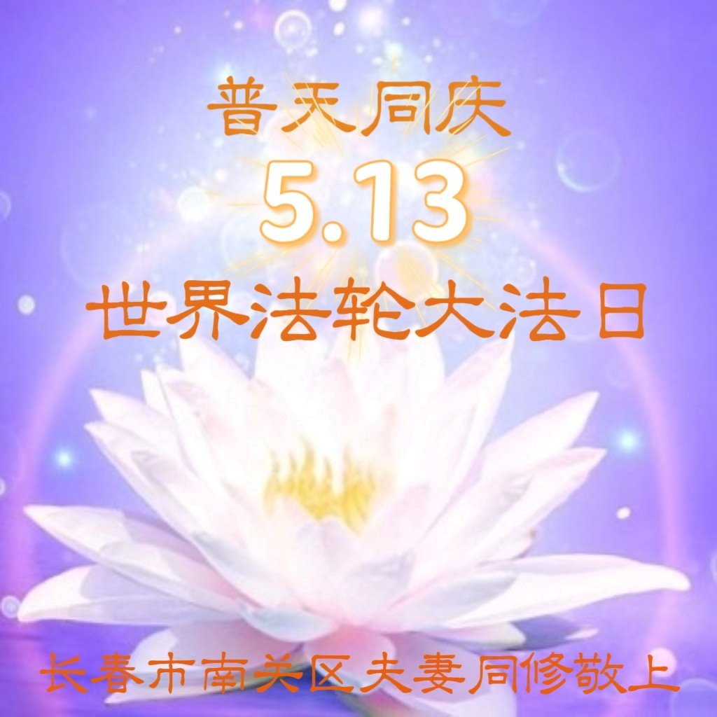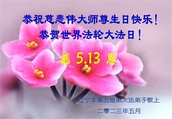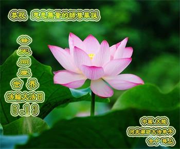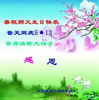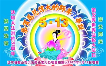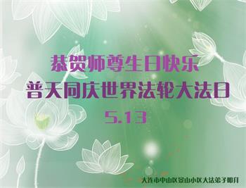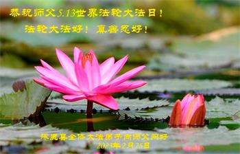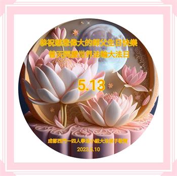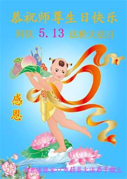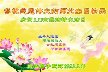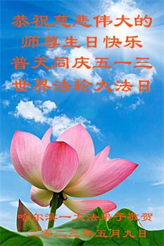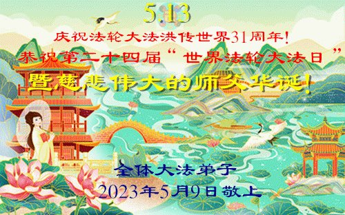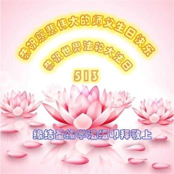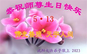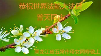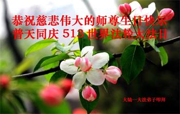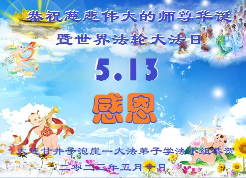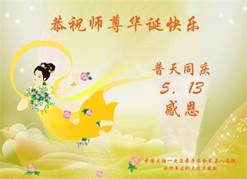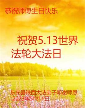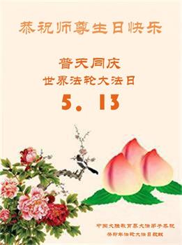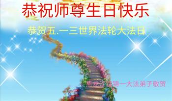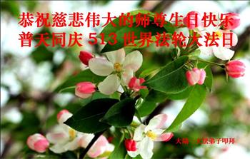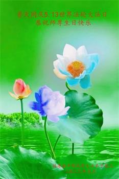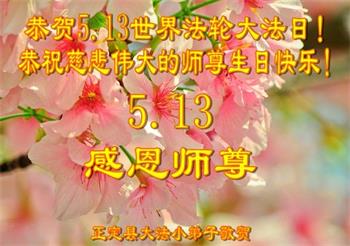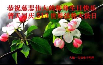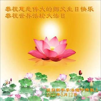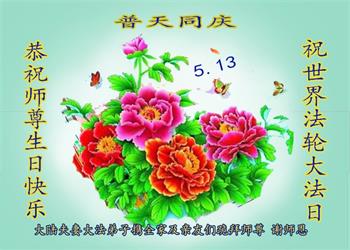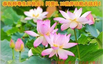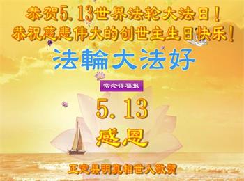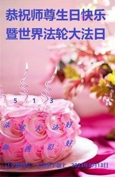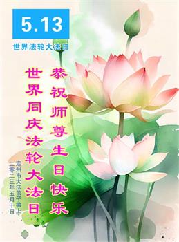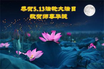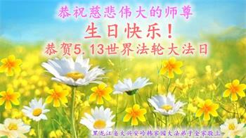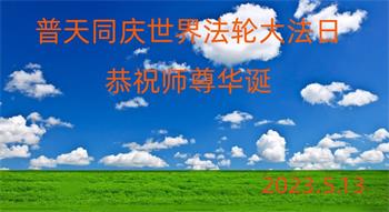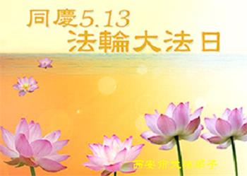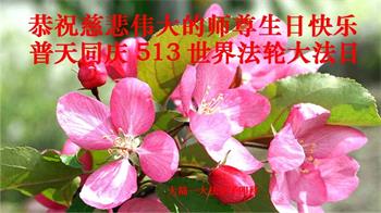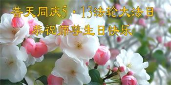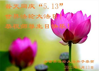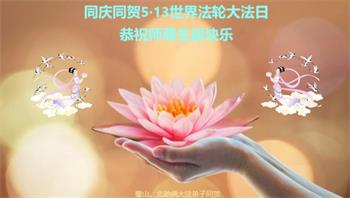 在5月13日世界法轮大法日到来之际,我作为一个大法弟子,能与全世界大法弟子庆祝这美好的,殊胜的世界法轮大法日,是多么激动人心的时刻,是多么令人难忘的时刻,是多么让我们每一个大法弟子都值得骄傲与幸福的日子。我会永远记住这殊胜5月13日,世界法轮大法日!