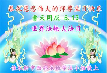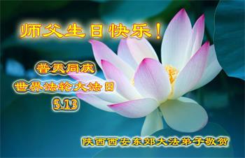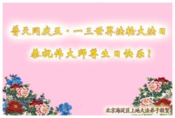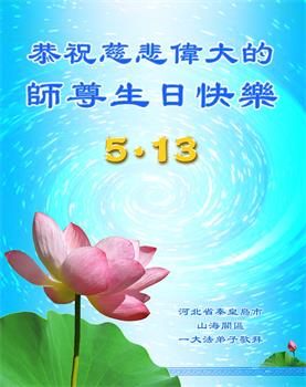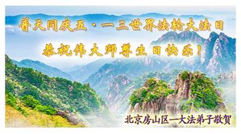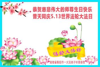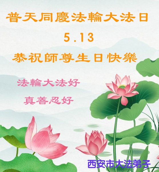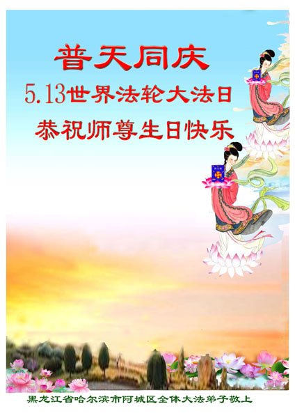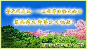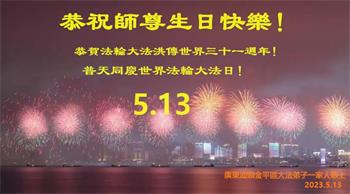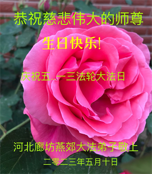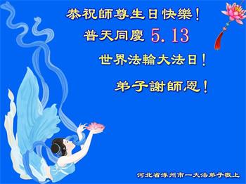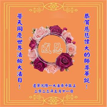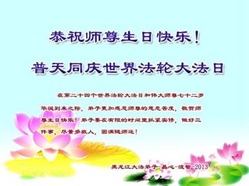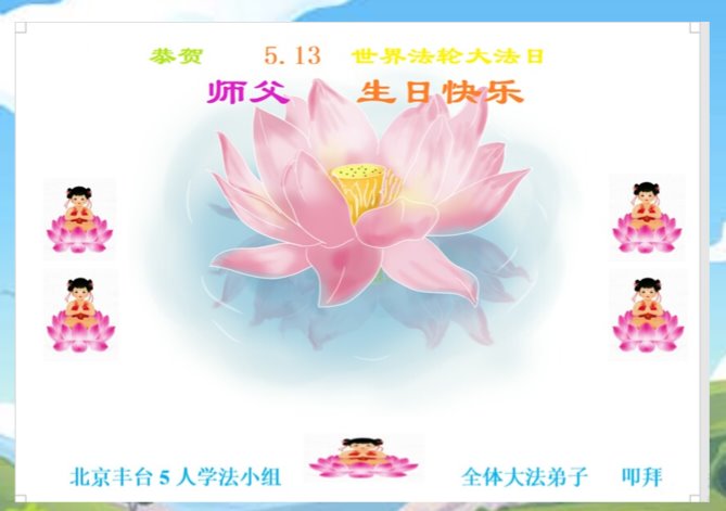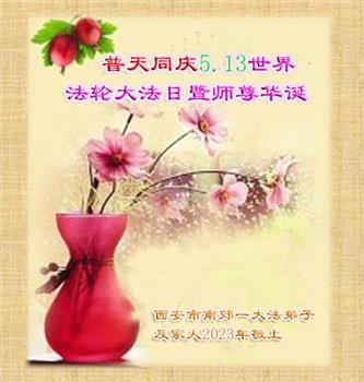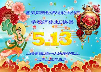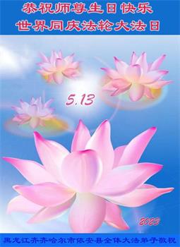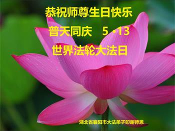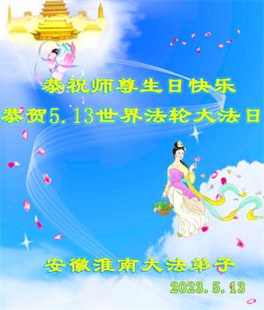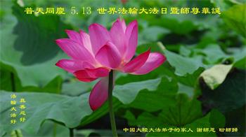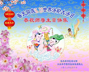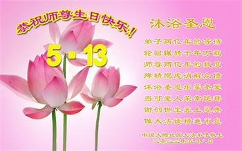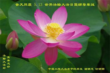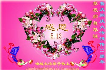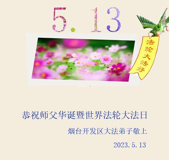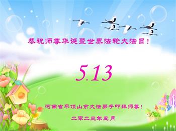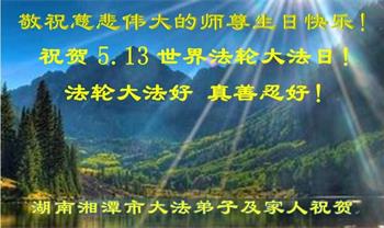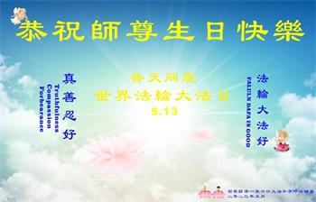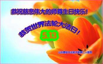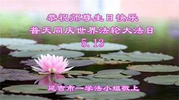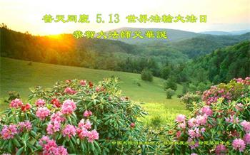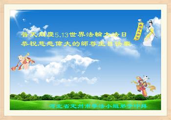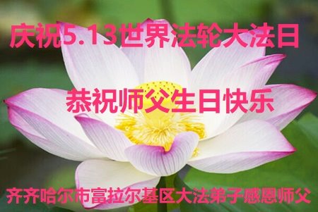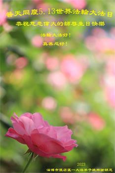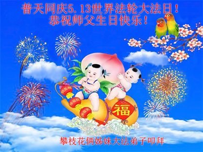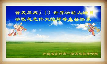 在5月13日世界法轮大法日到来之际,我作为一个大法弟子,能与全世界大法弟子庆祝这美好的,殊胜的世界法轮大法日,是多么激动人心的时刻,是多么令人难忘的时刻,是多么让我们每一个大法弟子都值得骄傲与幸福的日子。我会永远记住这殊胜5月13日,世界法轮大法日!