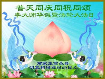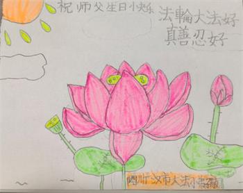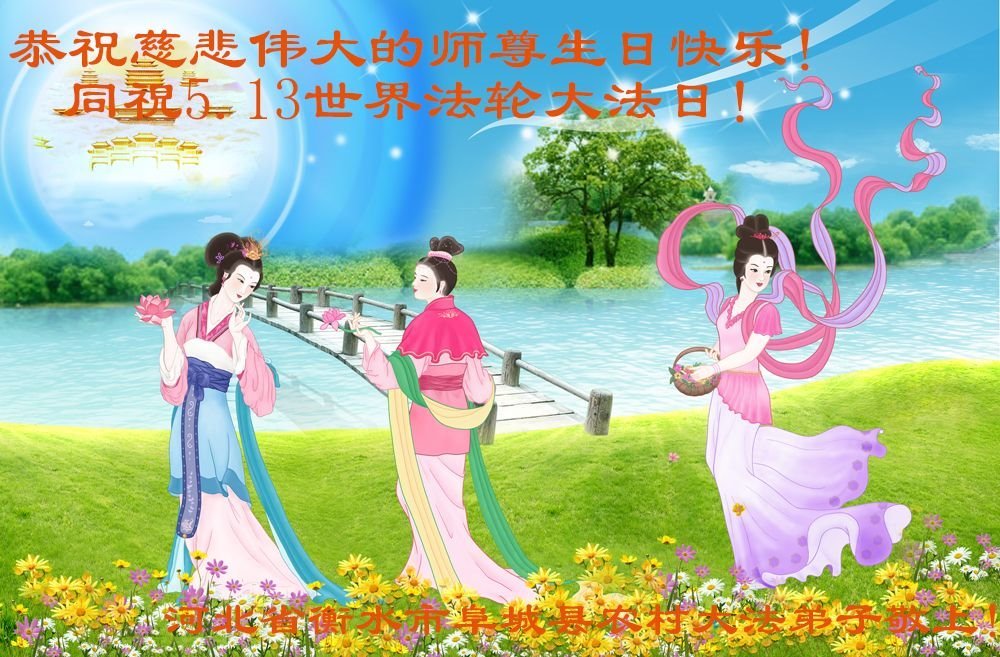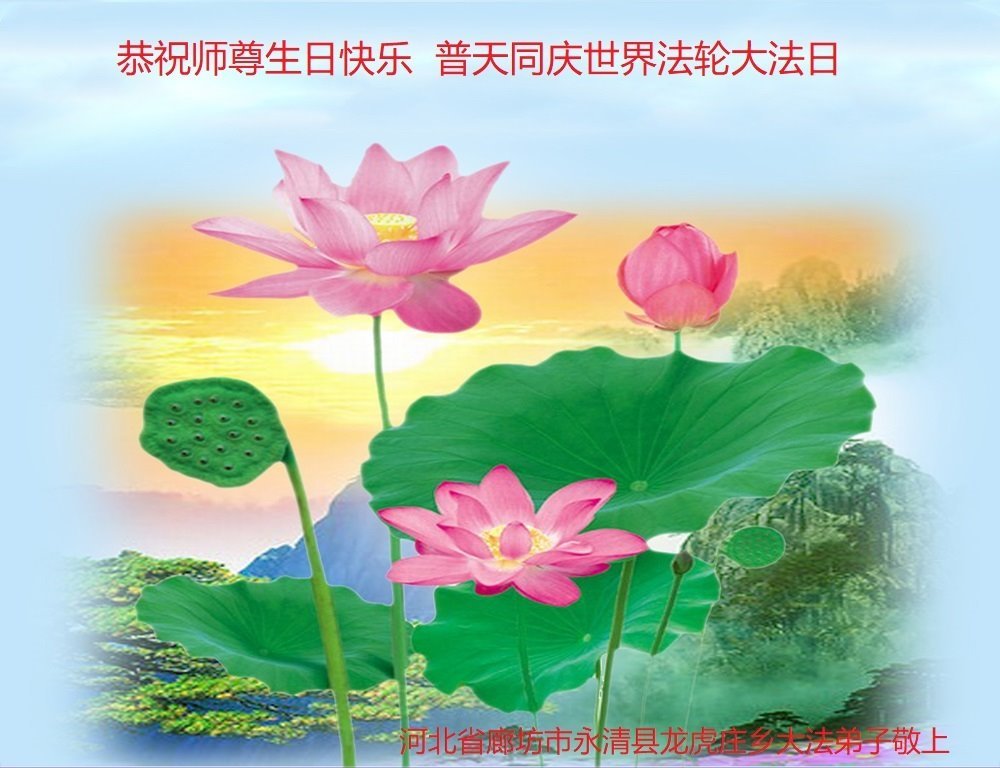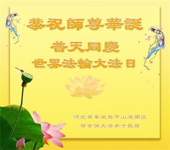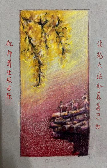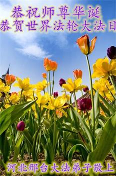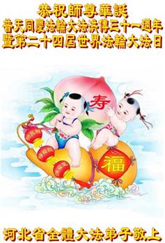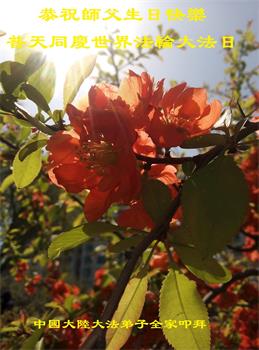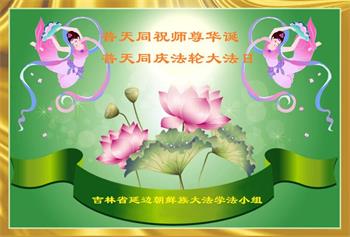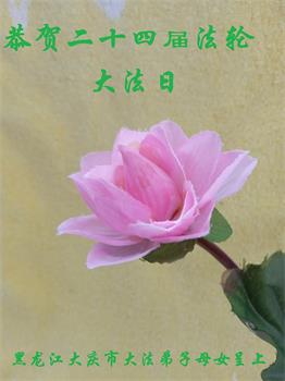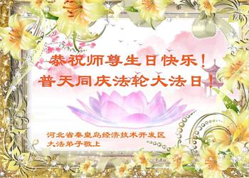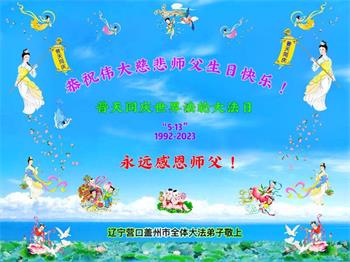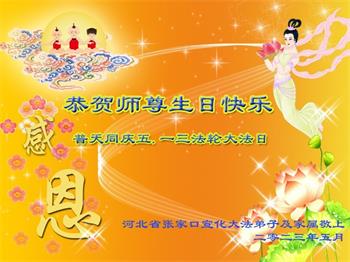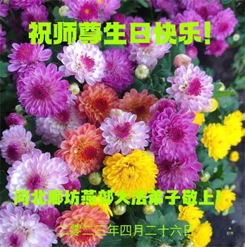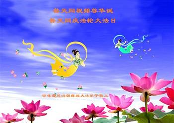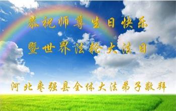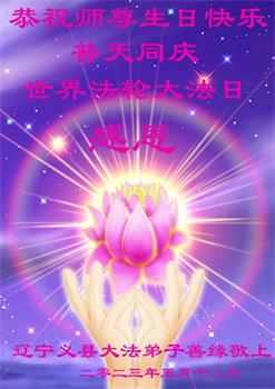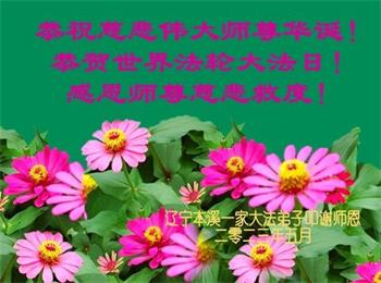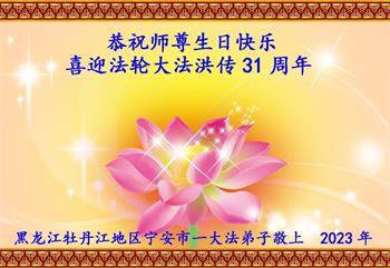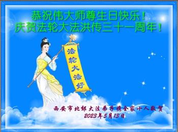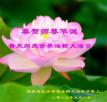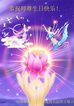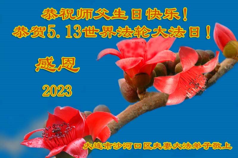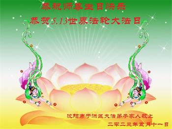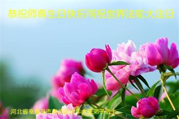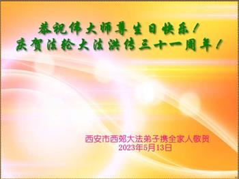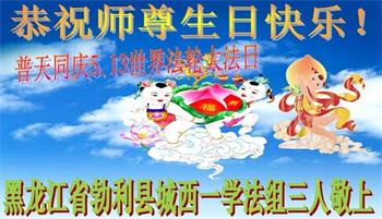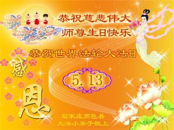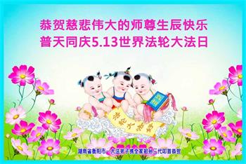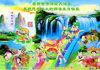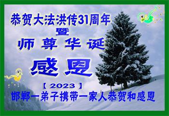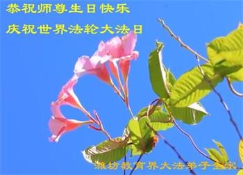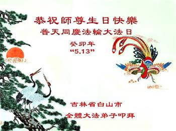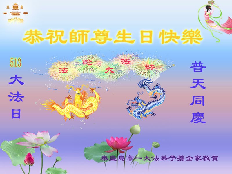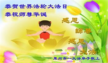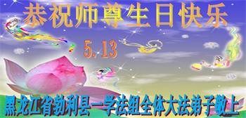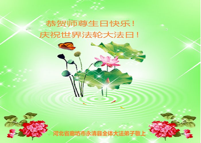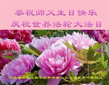慈悲伟大的师父好,我九岁时就跟随着妈妈学大法。在邪恶疯狂时期,我和妈妈一起配合发资料,写标语、贴标语、挂条幅。在妈妈多次被抓、被关押期间,我没有动摇信念。至今我坚信师父、坚信大法,我非常珍惜师父赐予的“正法时期大法弟子”的神圣称号。我生逢在师父传宇宙大法时期,万分感谢师父的伟大赐予,这是我生生世世的期盼,这是我来到人世的夙愿。在普天同庆的日子里,我怀着虔诚的心感恩师父,这是无法用人类语言来表达的心境。天地同庆,万物感恩,颂歌献给师父:谢谢师父的慈悲关怀,祝师父生日快乐!祝大法洪传三十一周年!
