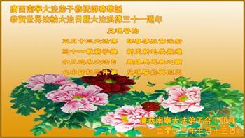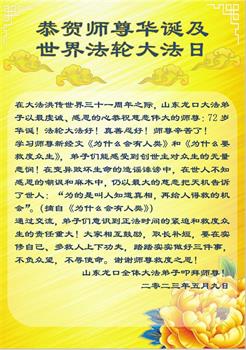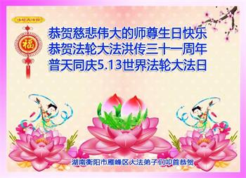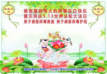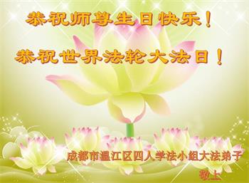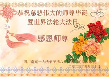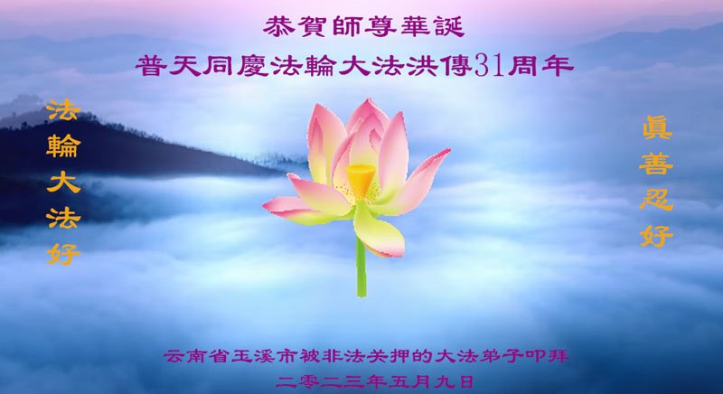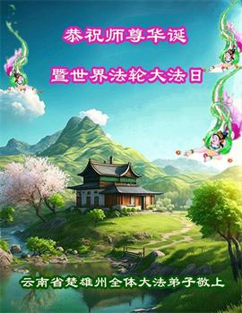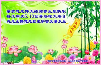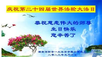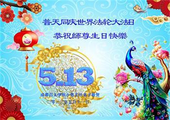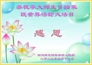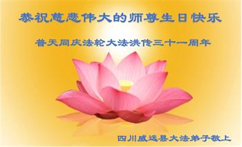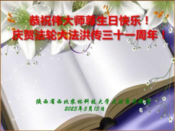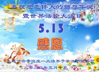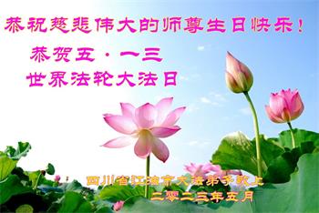 中国大陆西南大学大法弟子恭贺第二十四届世界法轮大法日暨师父七十二华诞!恭贺法轮大法洪传三十一周年!恭祝法轮大法洪传世界一百多个国家!感谢师尊的慈悲救度和保护!