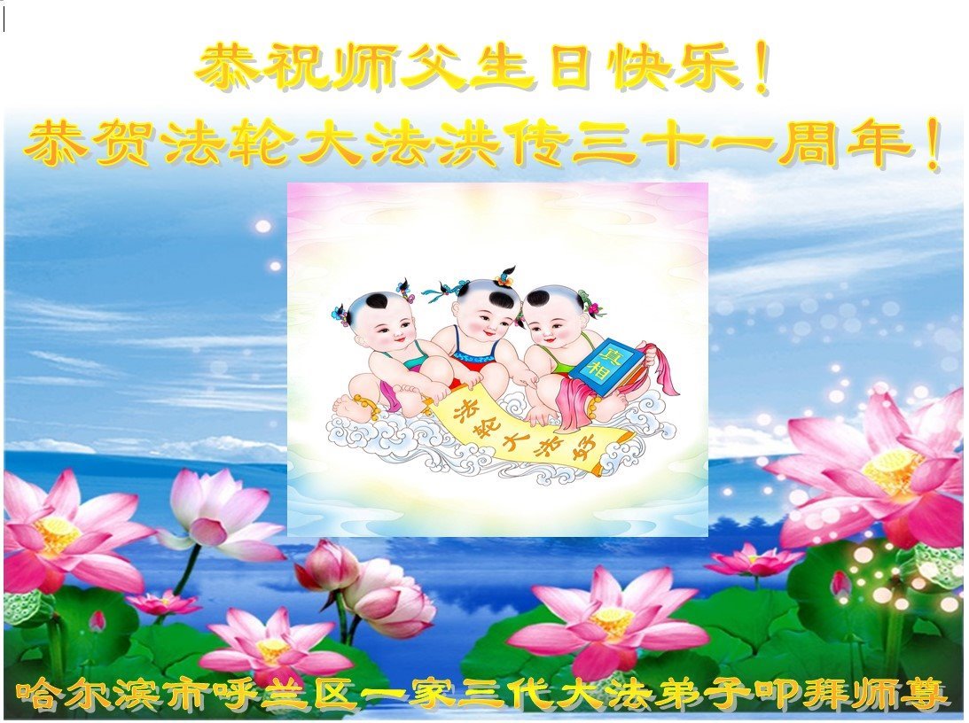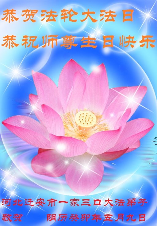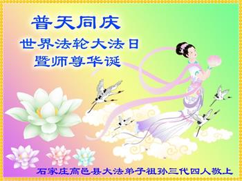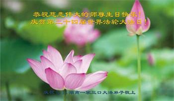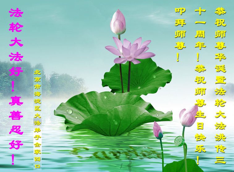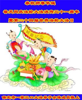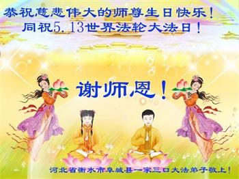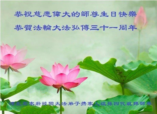 河北承德地区一青年大法弟子携家人,感谢师尊慈悲救度,恭祝师尊华诞!愿师尊多一些欣慰,少一些操劳。