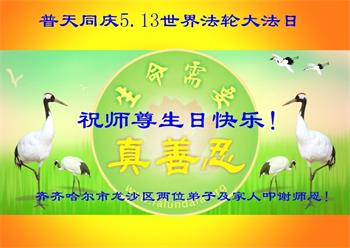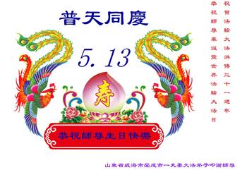 ![]() 图12:大陆高中老师翟德云:祝李洪志大师生日快乐 |