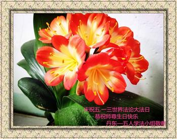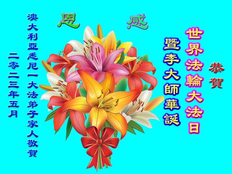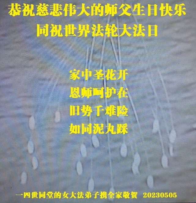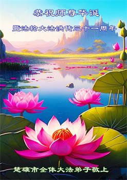 在茫茫人海中,在生生世世里,得遇正法,幸感师恩浩荡!复杂的环境考验着心性,走过的每一步都是在见证历史,积累、沉淀、逐渐蜕变,我知道,脚下是登天的阶梯。不随波逐流,不被环境干扰,我应象勇猛精進的雄狮。在这个最特殊的、亘古未有的历史巨变中,修炼心性,助师正法,汇入洪流中。喜迎、恭贺世界法轮大法日!恭祝师尊生日快乐!