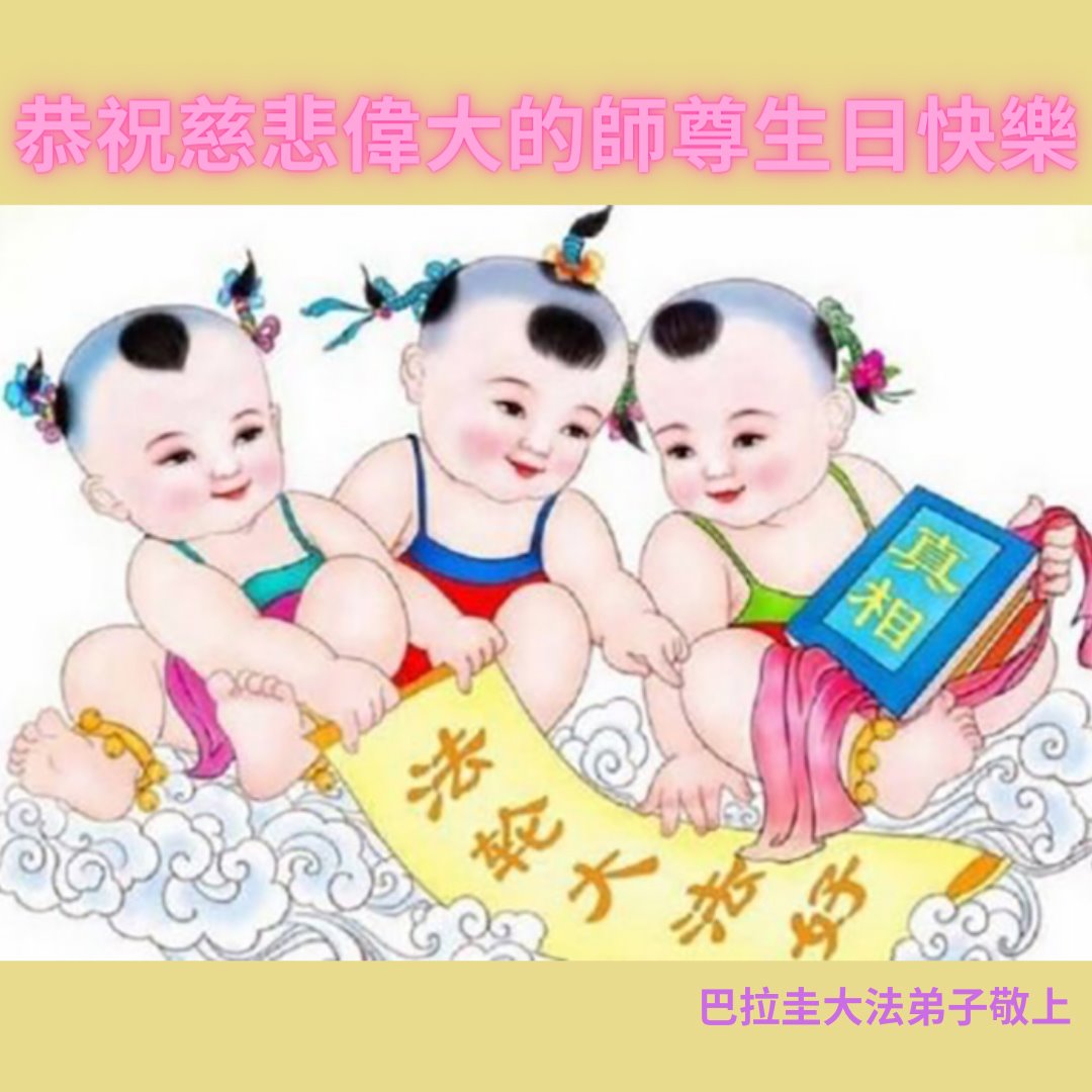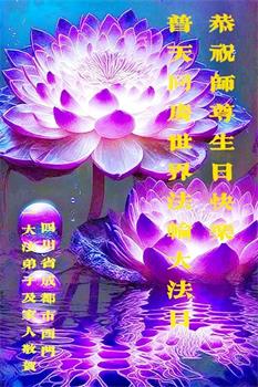 慈悲伟大的师父好,您辛苦了,祝师父生日快乐!谢谢师父的慈悲救度,谢谢师父让我得大法修炼。谢谢师父在修炼路上的慈悲保护与看护,谢谢师父的慈悲点化。在修炼路上,倾注了师父了多少的辛苦与心血。