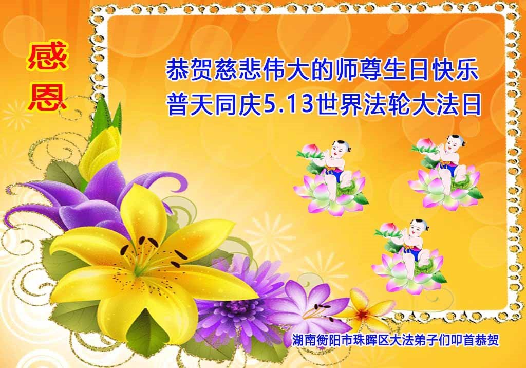 在多年的修炼中,弟子每一步的提高都离不开师尊慈悲的点化与保护,弟子感恩师父,感恩大法!在今后的修炼中,弟子会努力修好自己,做好三件事。回报师恩。