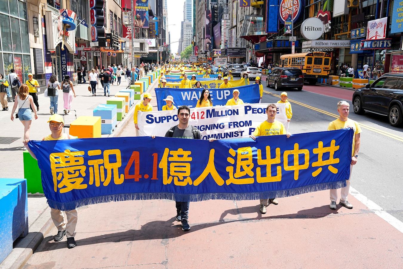 去年十一月份来美的翟德云在大陆是一名高中老师,他站在时代广场的路口观看游行。翟德云表示,《九评》把共产党九大基因揭露得太好了,希望能引起全球的共鸣,希望能进入全世界中小学的教材里面去,让全世界的孩子们也都能认识到共产党邪恶,在全世界都不允许共产党存在。