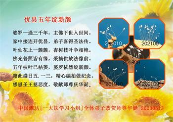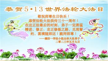 • 潍坊大法弟子恭贺世界法轮大法日暨师尊华诞(26条)