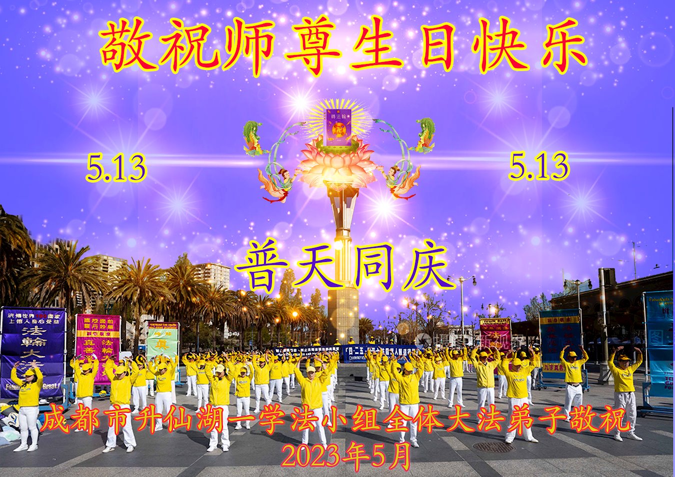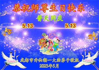 • 成都大法弟子恭贺世界法轮大法日暨师尊华诞(24条)