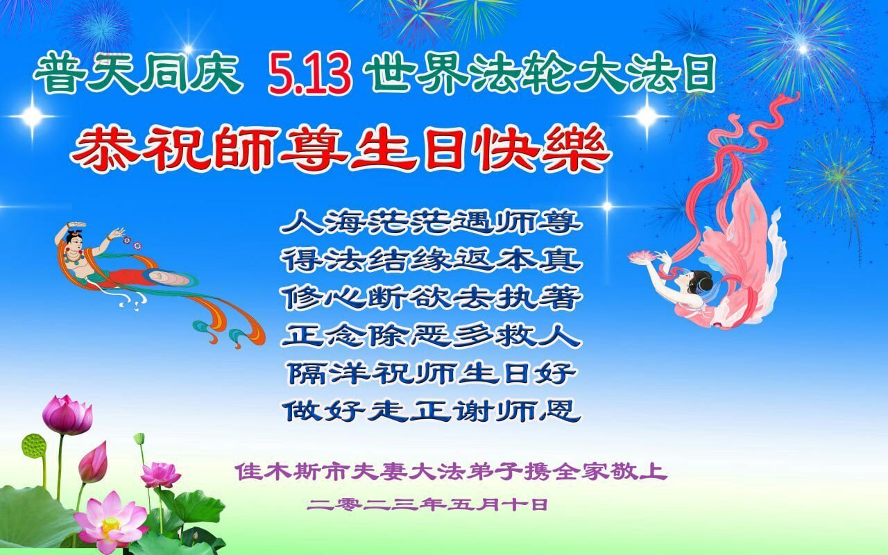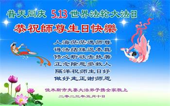 • 佳木斯大法弟子恭贺世界法轮大法日暨师尊华诞(24条)