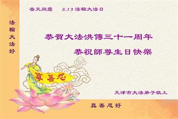 • 天津、上海、河北大法弟子恭贺世界法轮大法日暨师尊华诞(34条)