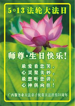 • 甘肃、广东、广西大法弟子恭贺世界法轮大法日暨师尊华诞(37条)
