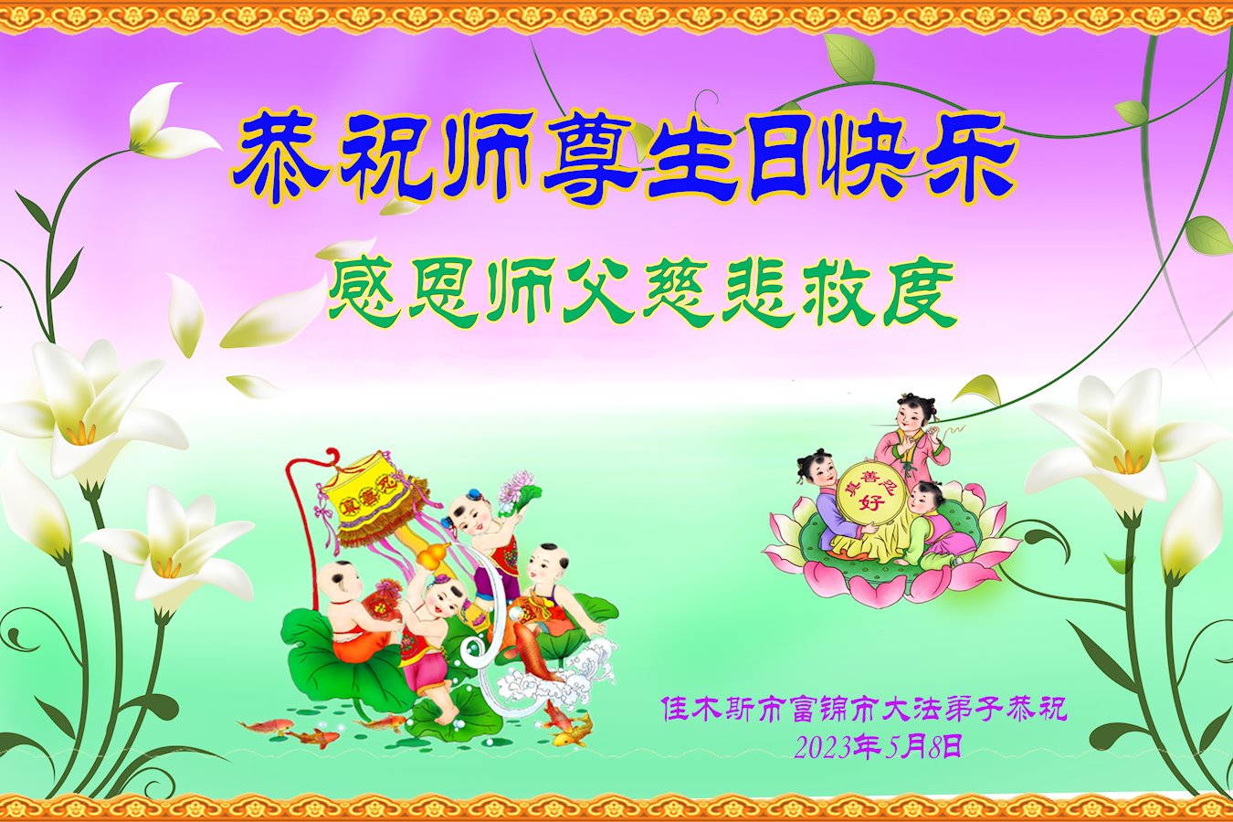 • 吉林、江苏大法弟子恭贺世界法轮大法日暨师尊华诞(34条)
