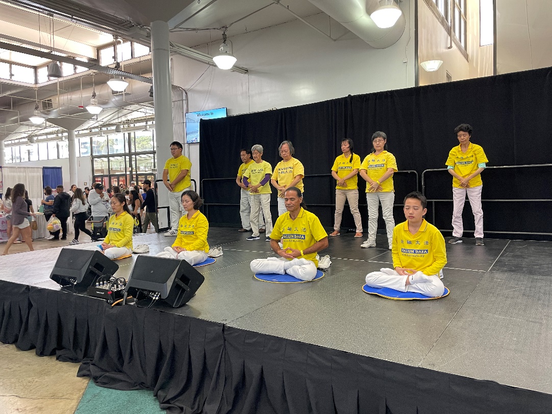 在法轮大法日之前的四月二十九日、三十日,法轮功学员在夏威夷尼尔·布莱斯德尔(Neal Blaisdell)展览厅里参展,弘扬大法。那是为期两天的“食品春季展”,有近两百个摊位提供各种美味佳肴和包装商品,吸引了很多人。法轮功学员演示功法、发放资料、讲述身心灵受益的经历,与人们分享了这一宝贵的精神食粮。