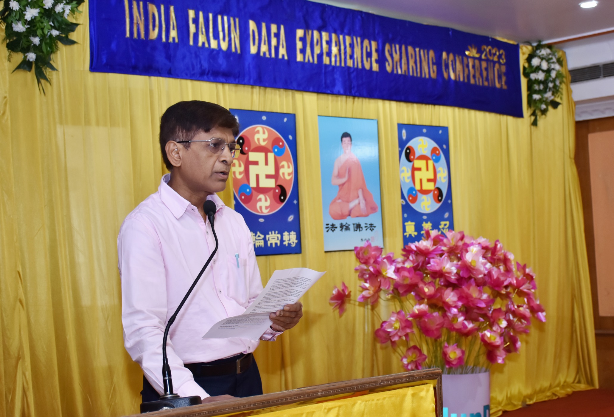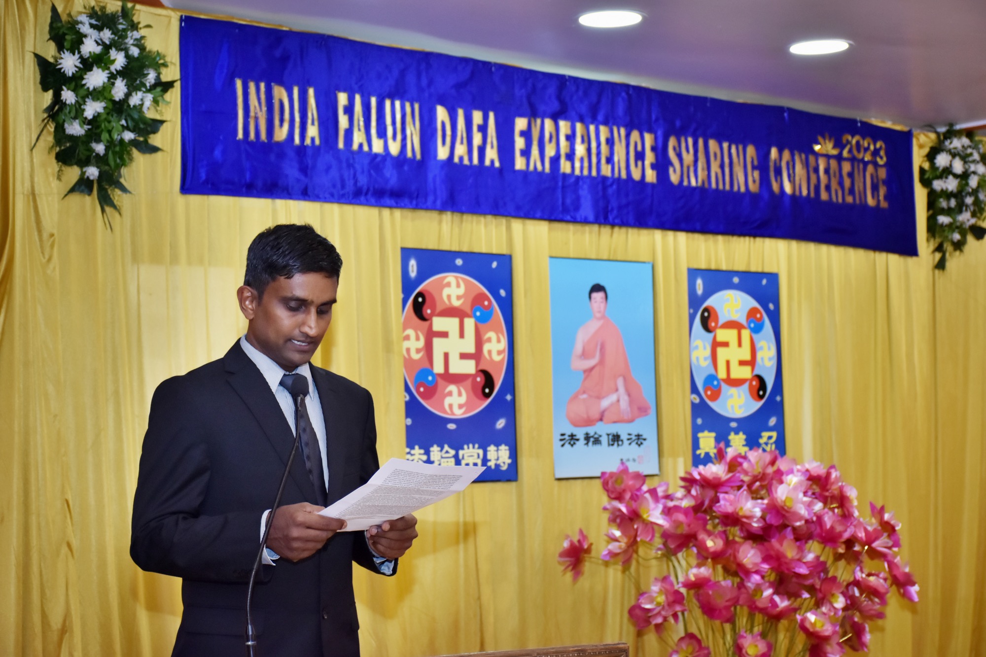 这是印度首次召开法会,来自世界不同地区的二十五位法轮功学员分享了他们的修炼心得。法轮大法创始人李洪志先生为法会发来贺词。