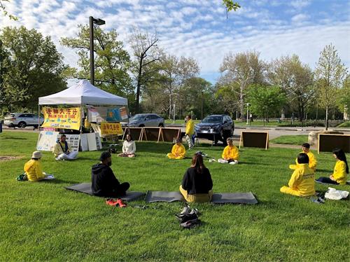 五月十四日阳光明媚,克利夫兰法轮大法修炼者庆祝世界法轮大法日。克利夫兰人看到了,高兴地加入学法轮大法。