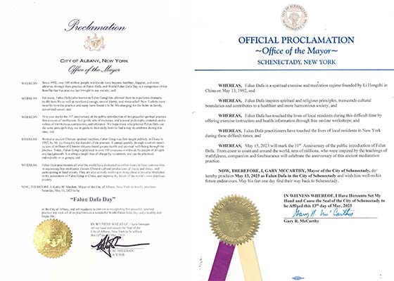 纽约联邦国会议员,纽约州参众议员、纽约市议员和多个市镇长官共六十多人发来褒奖贺信,颂扬法轮大法所倡导的真善忍是普世价值……