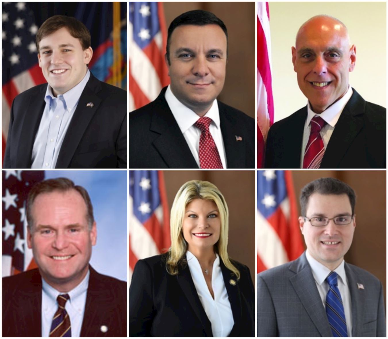 图1:纽约州众议院六位众议员共同签发嘉奖,宣布二零二三年五月十三日是纽约州的世界法轮大法日。图上,从左至右:纽约州第五选区众议员史密斯(Douglas M. Smith),州众议院少数党党鞭、第九十八区众议员布拉本尼克(Karl A. Brabenec),第三选区众议员德斯特法诺(Joseph P. DeStefano);图下,从左至右:州众议院项目委员会副主席、第八选区众议员费兹帕特里克(Michael J. Fitzpatrick),第二选区众议员吉格里欧(Jodi Giglio),以及第十七选区众议员米库林(John K. Mikulin)。
