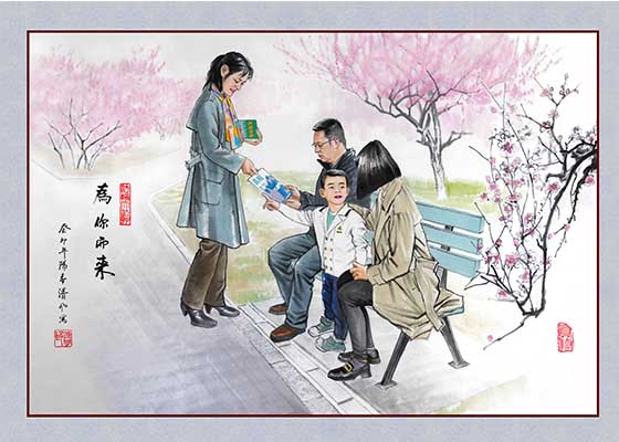 此作品是根据大法弟子发真相资料时拍摄的照片改编创作而成。