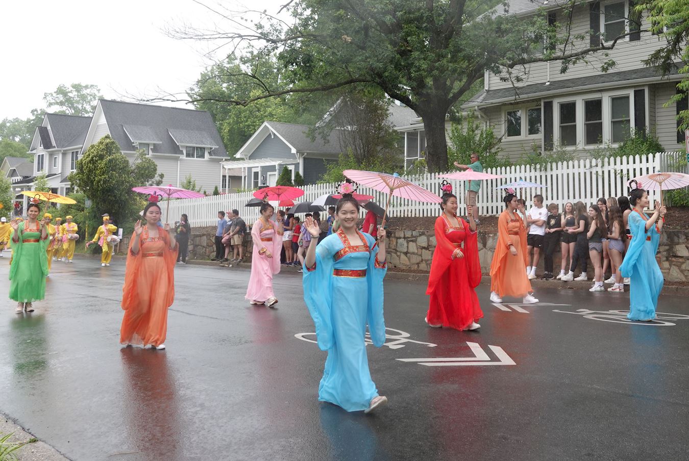 二零二三年五月二十九日下午,大华府地区部分法轮功学员参加了华盛顿近郊弗吉尼亚州瀑布教堂市(Falls Church)的阵亡将士纪念日游行。