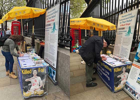 疫情过后,英国法轮功学员恢复了在大英博物馆门前的传播真相活动。每天都有不少来自世界各地的游客,很多人主动签名支持法轮功反迫害。