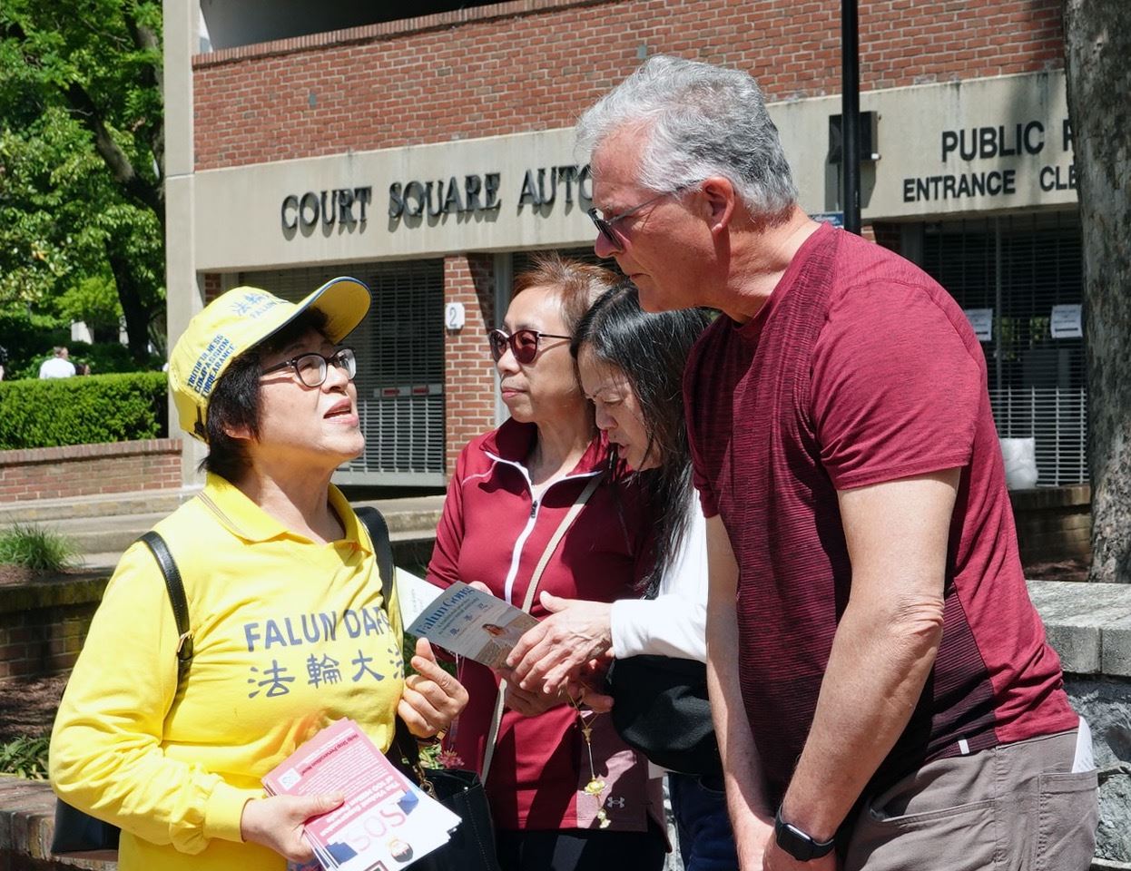 她继续说:“去年在这个游行中,我第一次看到法轮功,我当时就在想,这能是那篇文章中说的同一个团体吗?有人给了我一份资料,我回家后一看,就是同一个团体!我想知道,这场迫害停止了没有?”