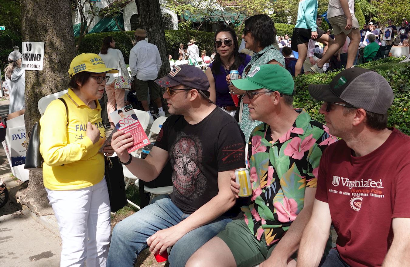 图7~9:法轮功学员向沿途的民众讲述着自己亲身遭受中共迫害的经历。
