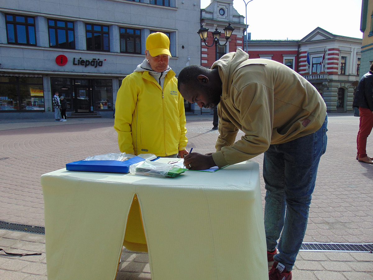 【明慧网二零二三年五月九日】二零二三年五月二日,在拉脱维亚港口城市利耶帕亚的玫瑰广场,当地部分法轮功学员向当地居民及游客介绍法轮大法修炼功法,以及中共迫害法轮功的真相。明真相的民众纷纷签名,声援制止中共迫害法轮功。