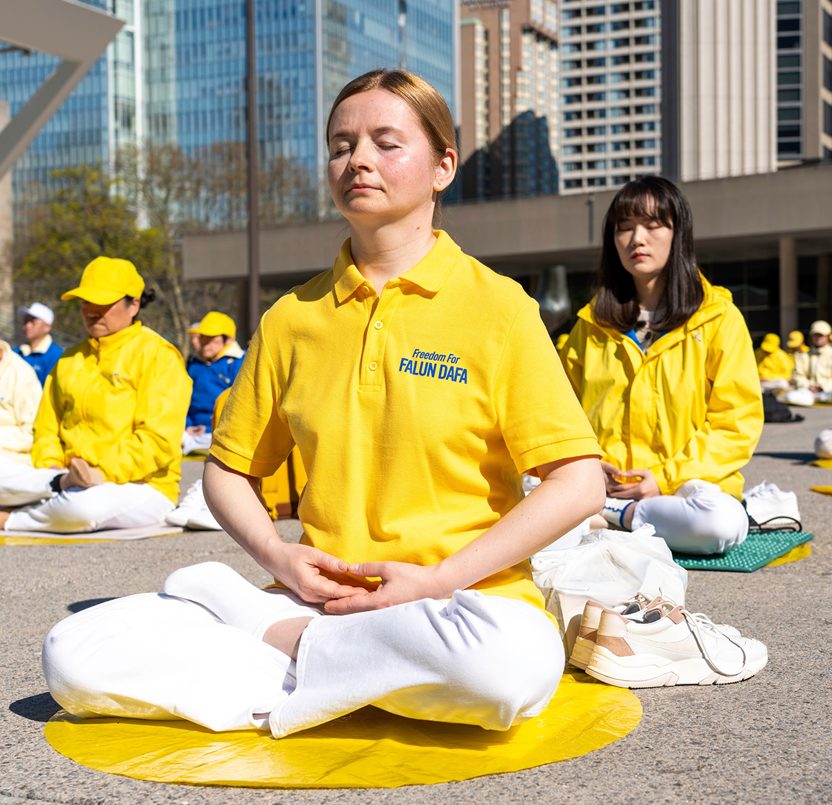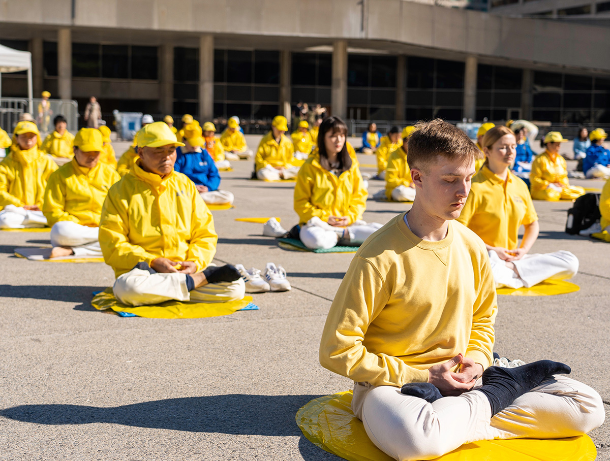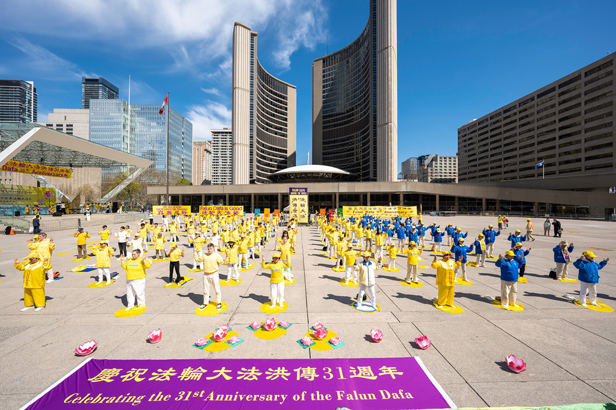 图1:在“513”世界法轮大法日到来之际,多伦多法轮功学员于二零二三年五月六日,在市政厅广场举办活动,庆祝法轮大法弘传三十一周年。