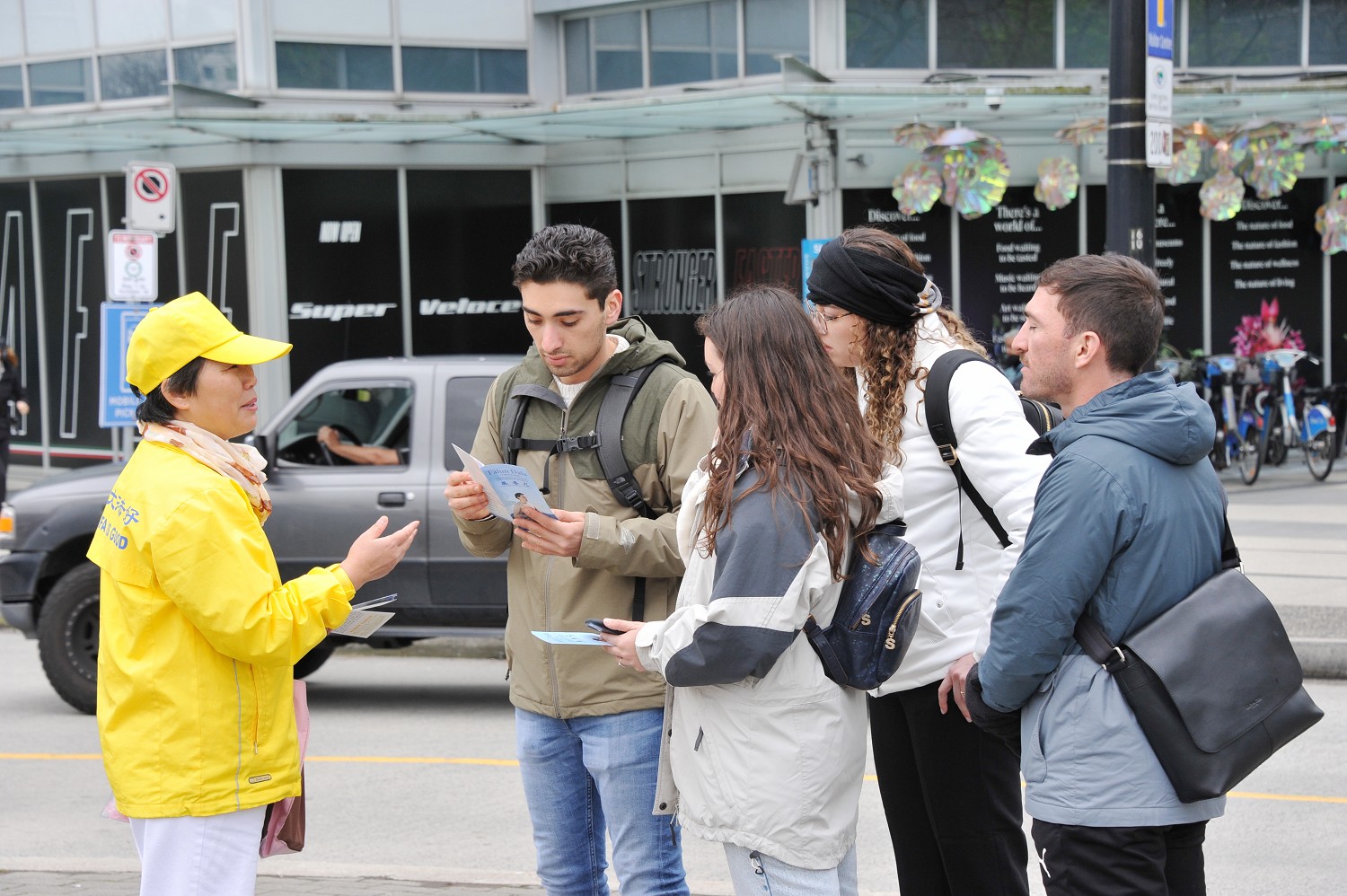 集会在温哥华会展中心火炬广场(Jack Poole Plaza)举行,温哥华法轮大法学会代表在集会中发言,“法轮功是以真、善、忍为原则的修炼功法。他教导人们要有爱心,为他人着想,做一个对社会负责的人。”她说:“今天,全世界有数以千万计来自不同民族背景的人修炼法轮功。”