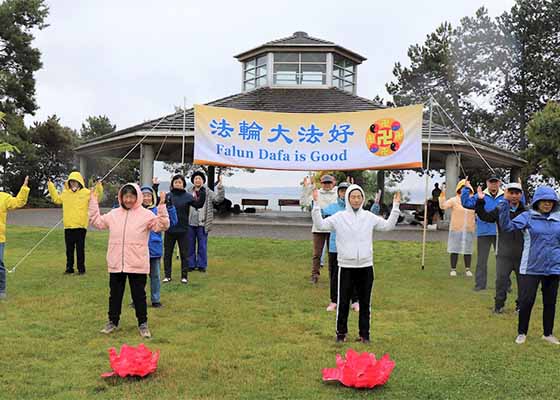 西雅图法轮功学员在滨海公园炼功弘法