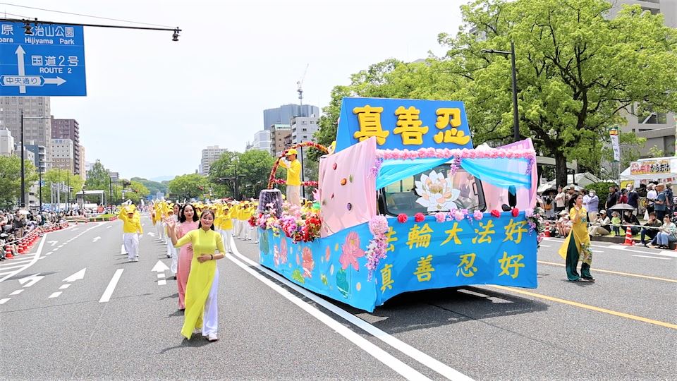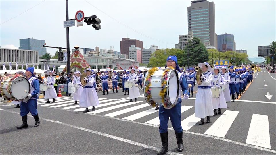 ![]() 图1~5:法轮功学员受邀参加第四十六届广岛鲜花节游行。 |