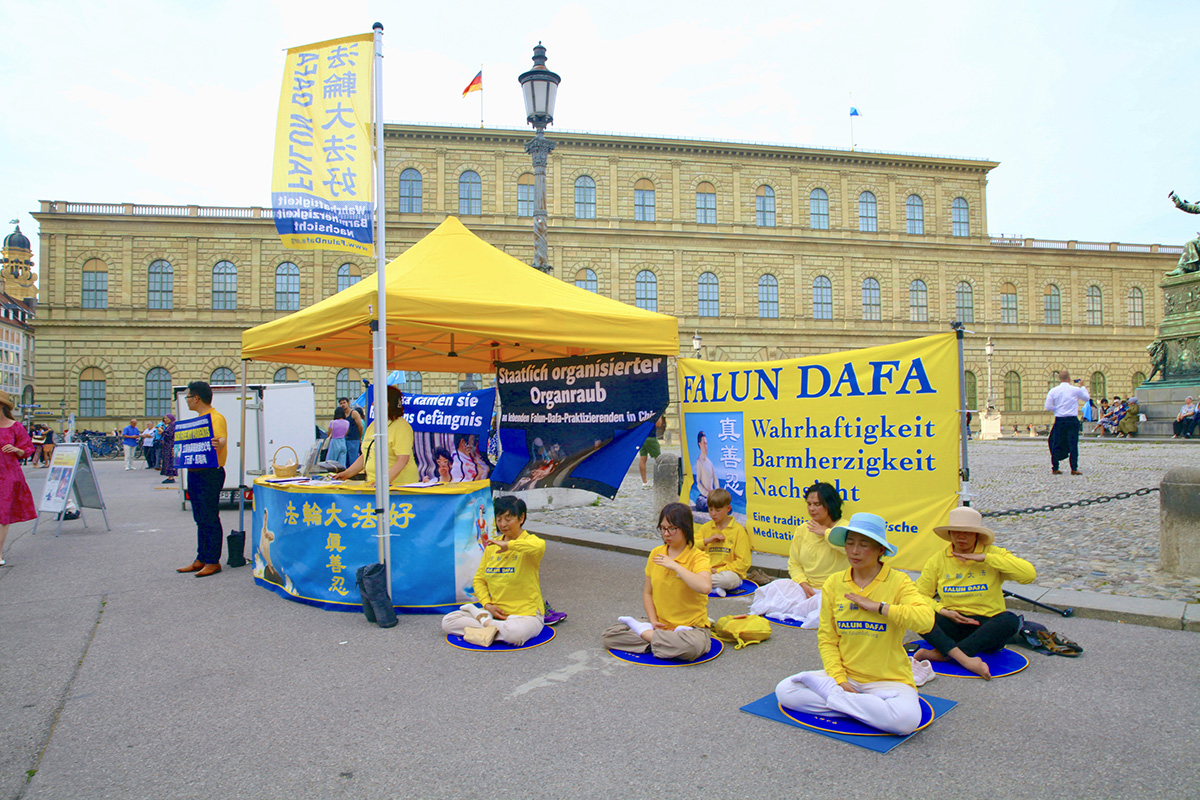 德国总理朔尔茨(Olaf Scholz)上午在德国首都柏林的总理府与李强会谈;傍晚,巴伐利亚州州长索德(Markus Söder)在首府慕尼黑所在地的慕尼黑王宫与李强会面。会谈期间,法轮功学员一直在德国总理府和慕尼黑王宫前的马克西-约瑟夫广场(Max-Joseph-Platz)进行和平抗争。一些过往的民众在了解了法轮功是什么,为什么中共要迫害法轮功,以及中共活摘法轮功学员器官的罪恶后,纷纷在签名簿上签名,声援法轮功学员反迫害。