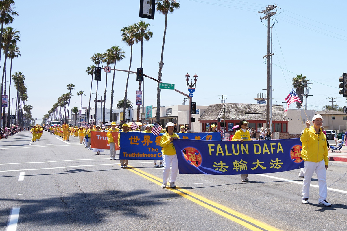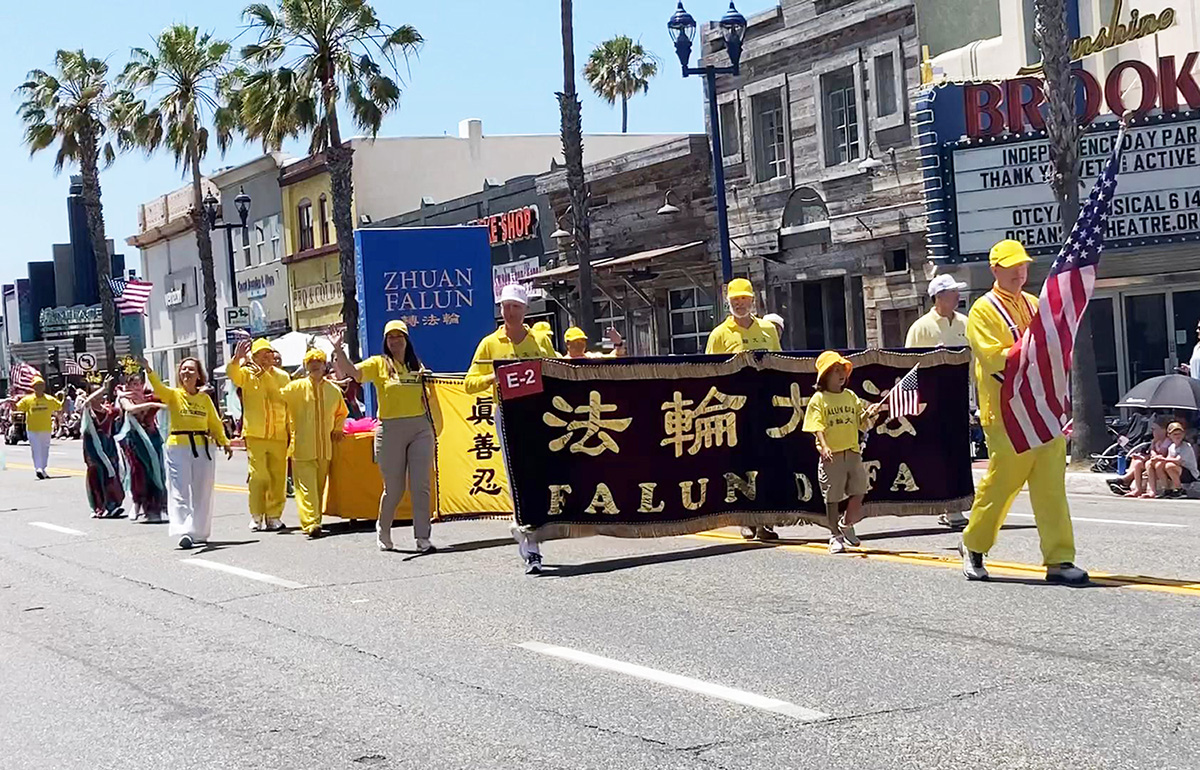 • 法轮功南加州海滨市独立日游行 传播美好信息