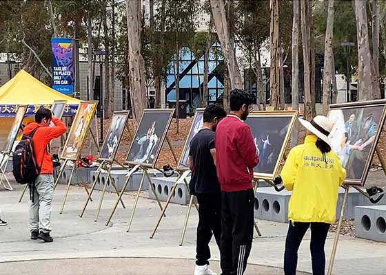 在学校放暑假前,圣地亚哥法轮功学员5月30日在加州大学圣地亚哥分校举办真善忍美展,向师生们介绍法轮功并揭露中共对法轮功的迫害。