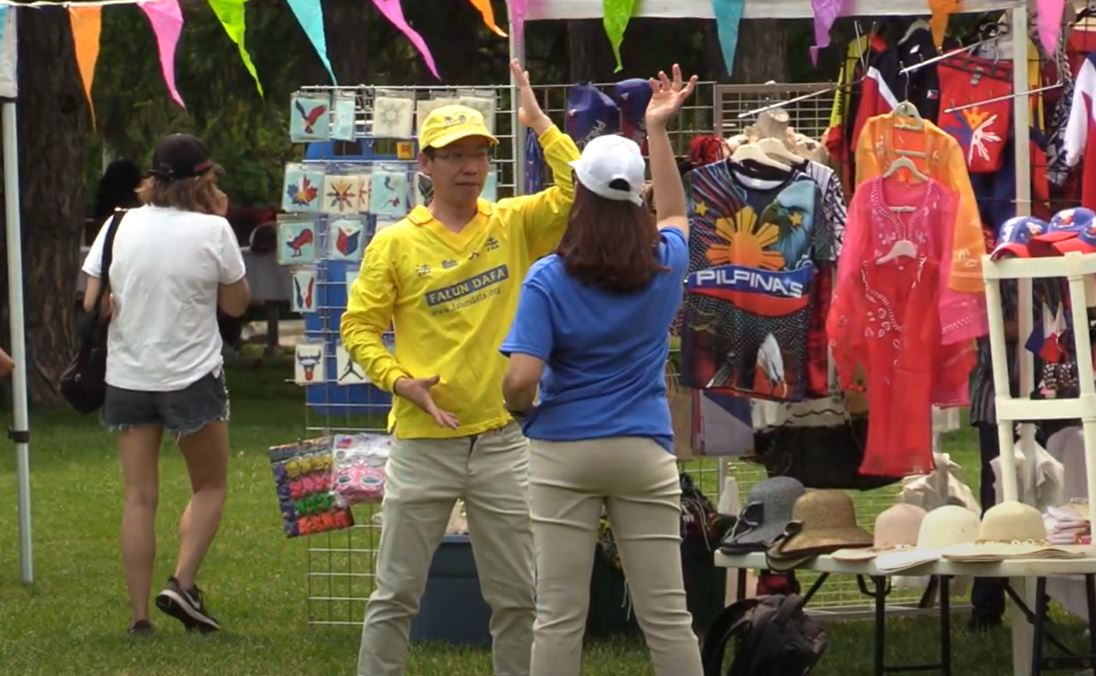纳赞宁(Nazanin)来自伊朗,她曾经在尼亚加拉大瀑布旅游时,接到过法轮大法的传单。这次碰到了法轮大法的展位,她决定要来学功。非常巧合的是,这次在展位教她功法动作的又是一位同样来自伊朗的法轮功学员,她们用都熟悉的母语互相交流。
