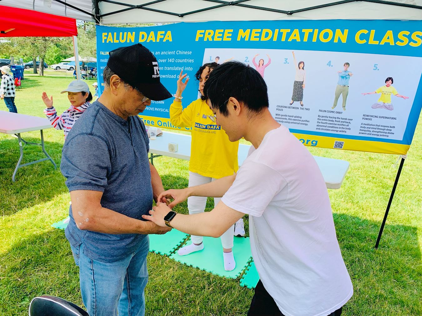 六月的春日阳光正好,微风不燥,法轮功学员也应主办方邀请,在绿色的草坪上搭起了展位,参加了这次文化节活动,前来学功法的民众非常受益和赞赏给社区带来美好。