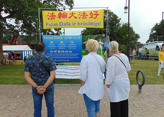 七月一日,来自拉脱维亚的部分法轮功学员参加了在文茨皮尔斯市举办的海洋节庆祝活动。