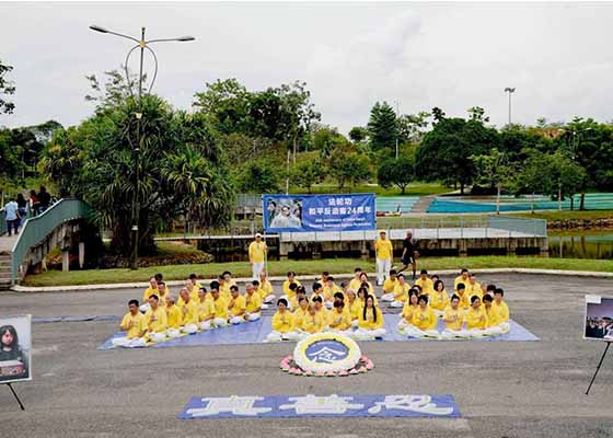 七月二日,马来西亚柔佛州学员在古来太子城森林公园举行“七·二零”反迫害悼念活动。